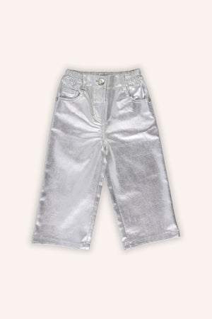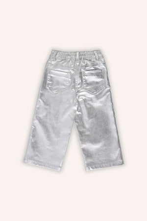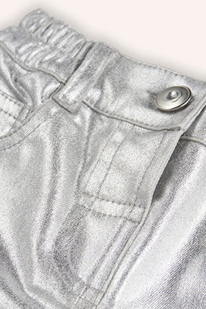 Blugi drepti eleganti, cu folie argintie, pentru bebe fetite