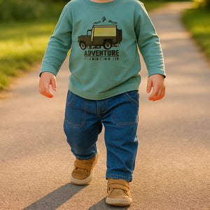 Blugi jogger PANCO - Let's Explore sunt confectionati pentru a oferi confort maxim celor mici, datorita materialului de calitate inalta. Acesti pantaloni sunt ideali pentru baietei cu varste cuprinse intre 0 si 3 ani, oferind libertate de miscare datorita elastanului inclus in compozitie.
