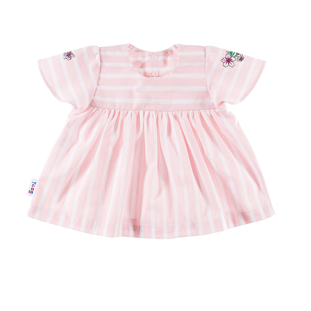 Bluza babydoll EEVI - Flowers, Roz cu dungi albe, pentru fetite