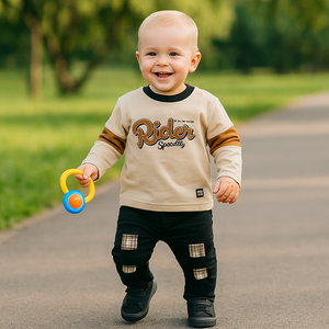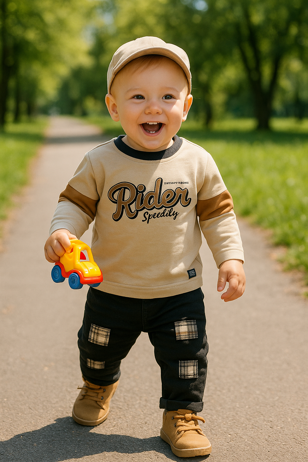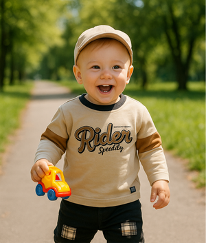 Bluza subtire cu maneca lunga Road Legend, Bej, pentru bebe baieti