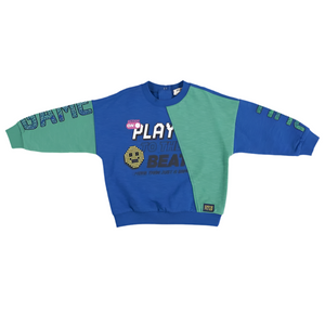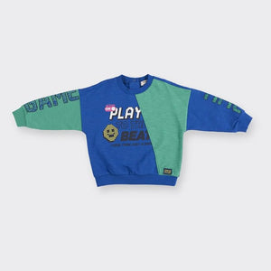 Bluza cu maneca lunga si impimeu SmileFace PANCO - Gaming Mode, Albastru aprins si Verde, pentru baietei