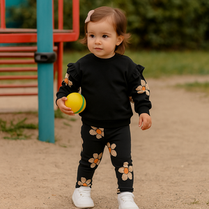 Completează garderoba micuței tale cu această bluză adorabilă, cu mânecă lungă, din colecția Good Day de la Panco. De culoare neagră și decorată cu un model delicat de floricele roz, bluza este o alegere rafinată și feminină, perfectă pentru fetițele cu vârste între 0 și 3 ani.