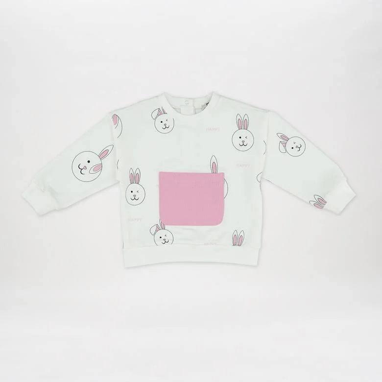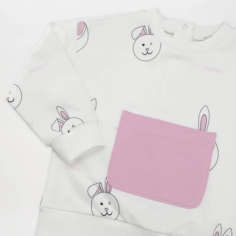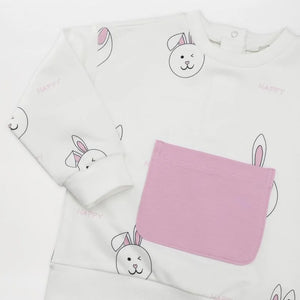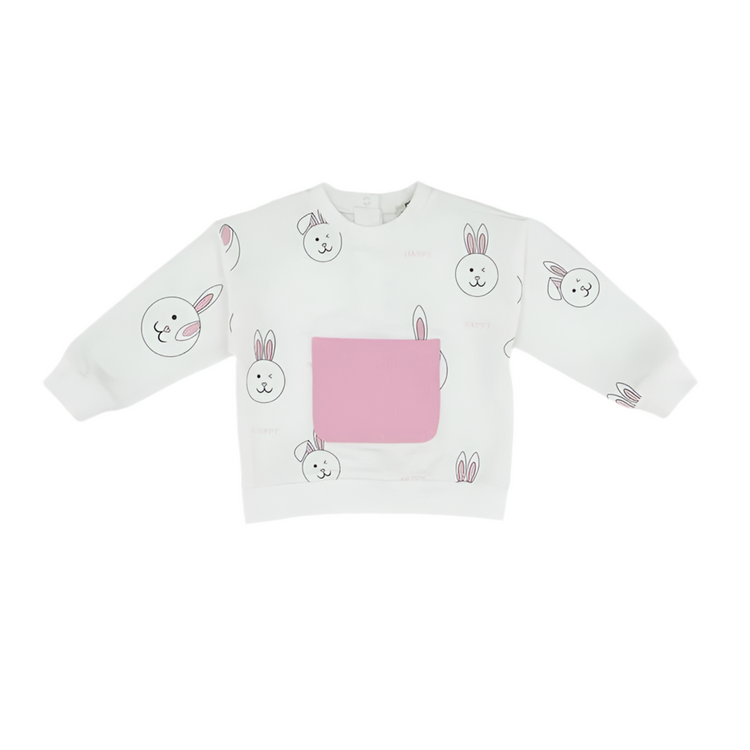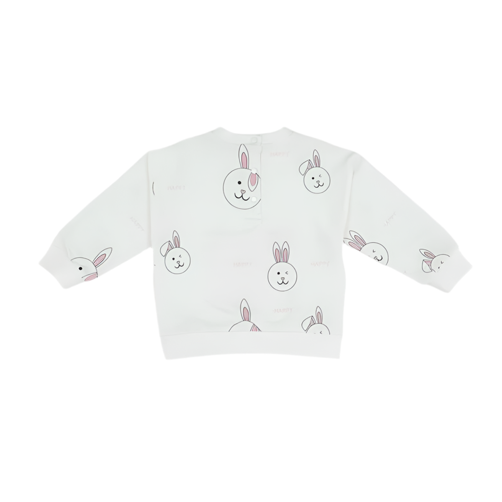 Bluza cu maneca lunga si imprimeu Iepuras PANCO - Stella, Alb si Roz, pentru fetite