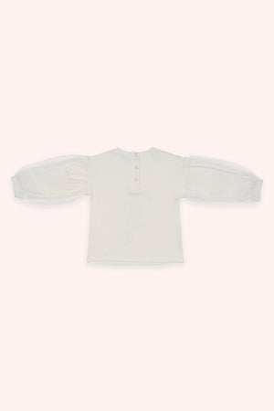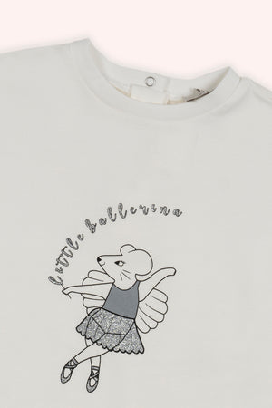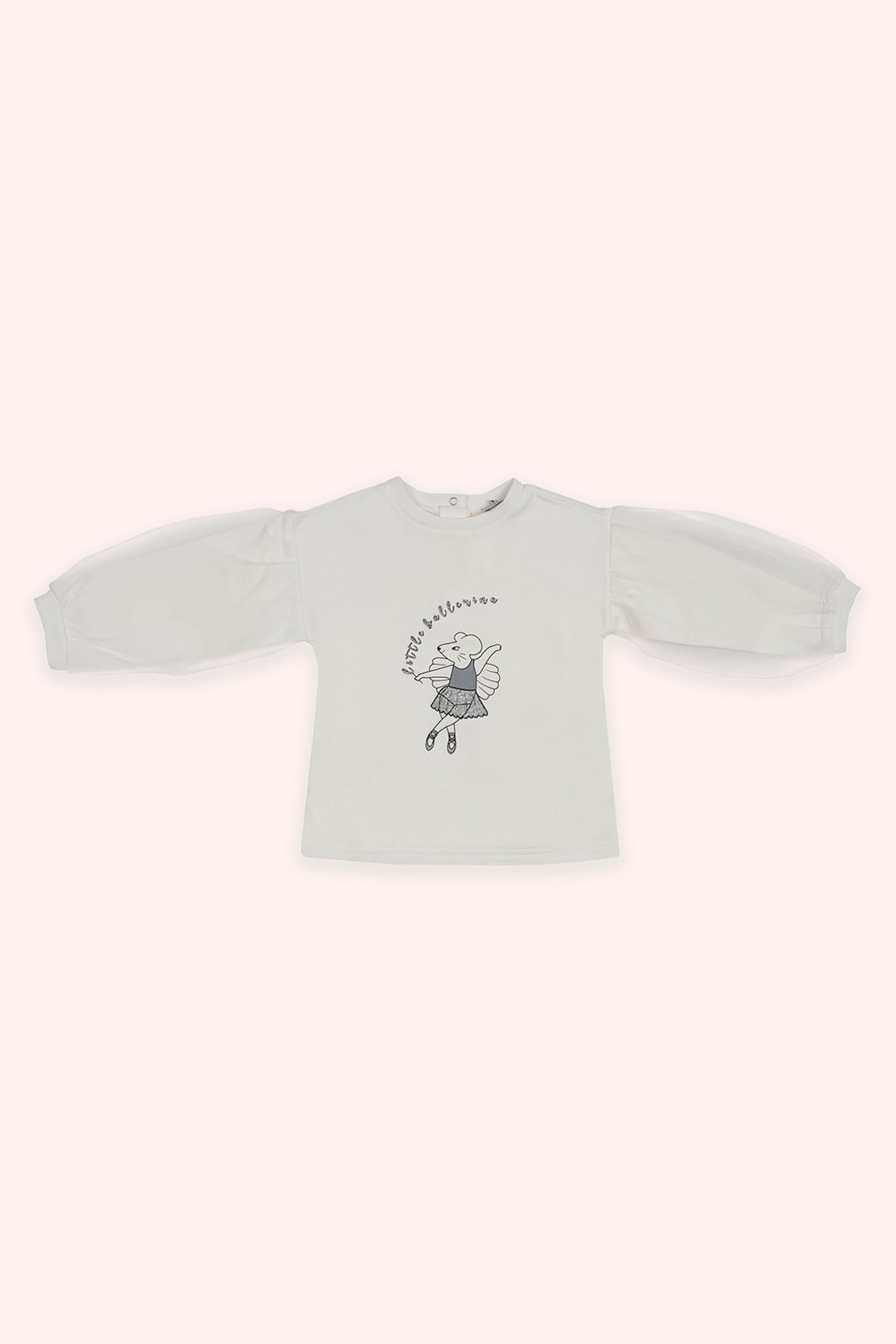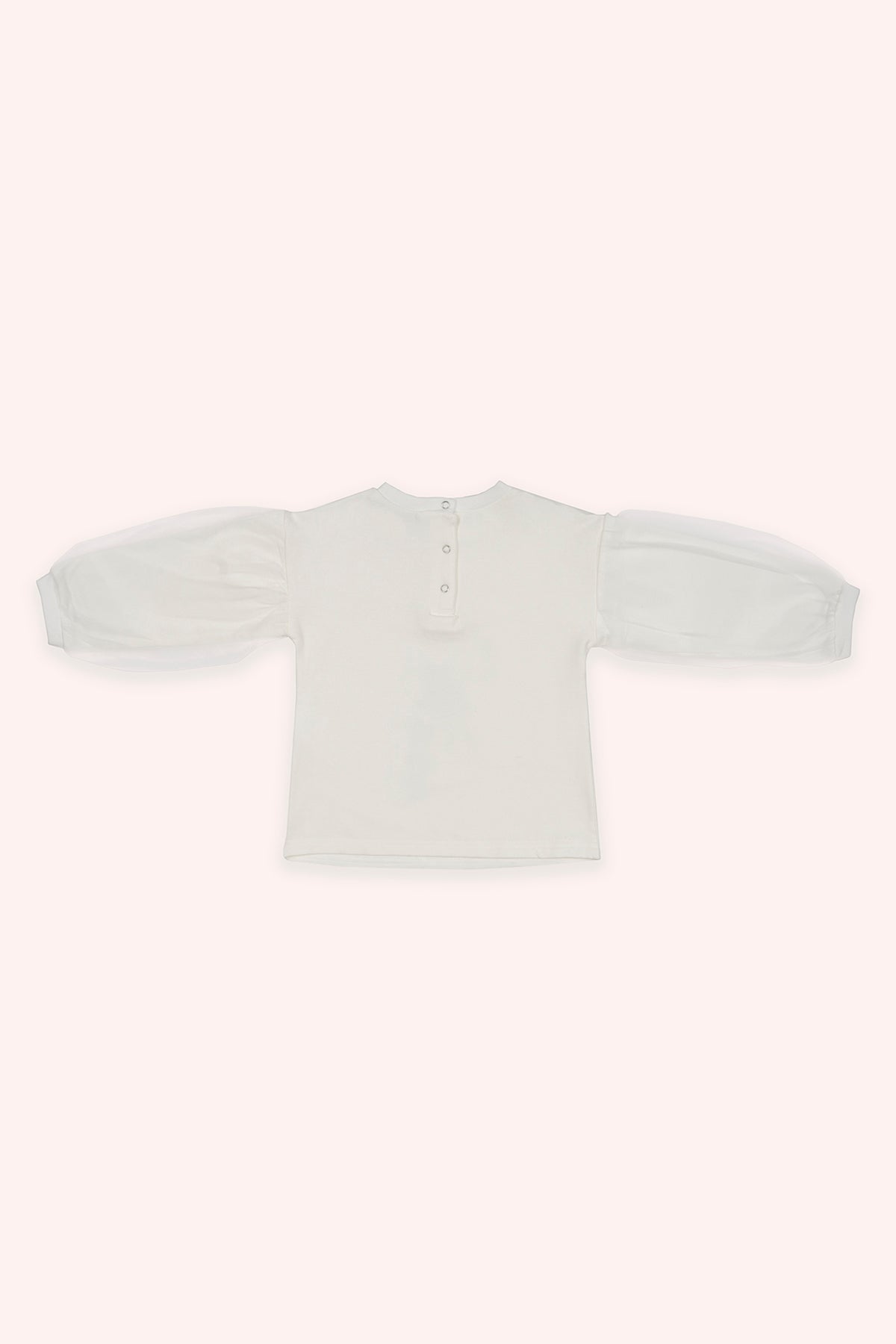 Bluza cu maneca lunga si tull, model soricel, PANCO - Little Ballerina, Ecru, pentru fetite