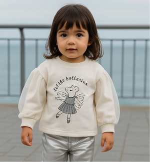 Bluza cu mânecă lungă și tulle din colecția Little Ballerina este o alegere elegantă pentru fetițele cu vârste între 6 luni și 3 ani, aducând un strop de rafinament garderobei de zi cu zi. Confectionată dintr-un material de calitate, cu 95% bumbac și 5% elastan, bluza oferă confort și o flexibilitate plăcută pentru pielea sensibilă a celor mici.