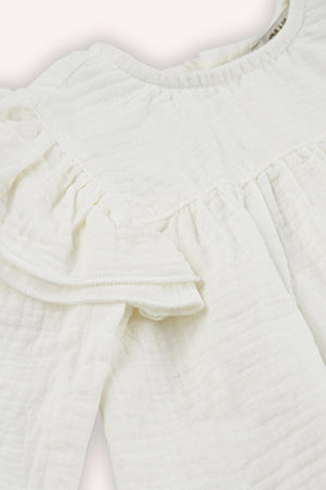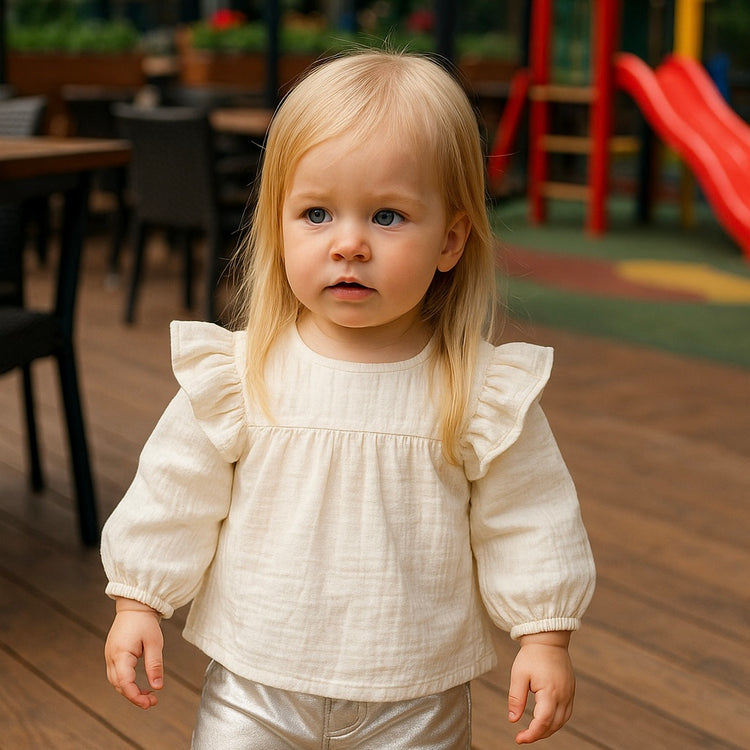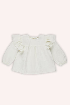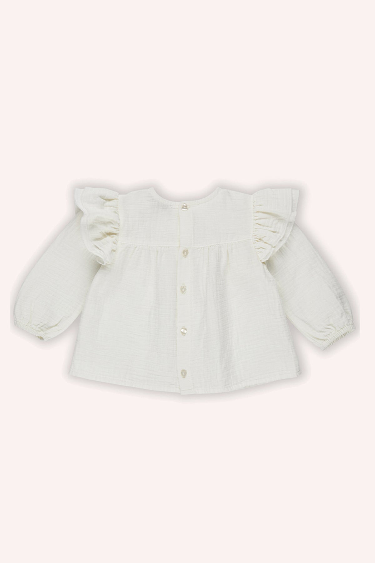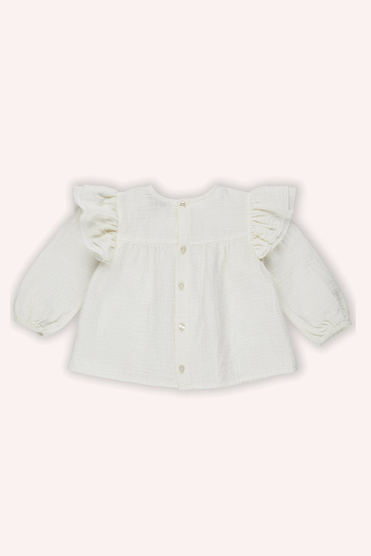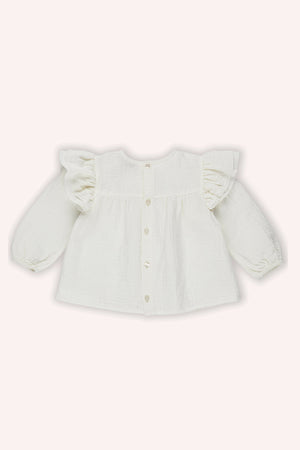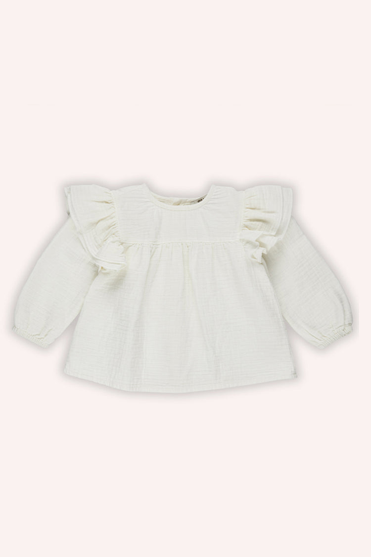 Bluza cu maneca lunga si volan, PANCO - Minimal Optimist, Ecru, pentru fetite