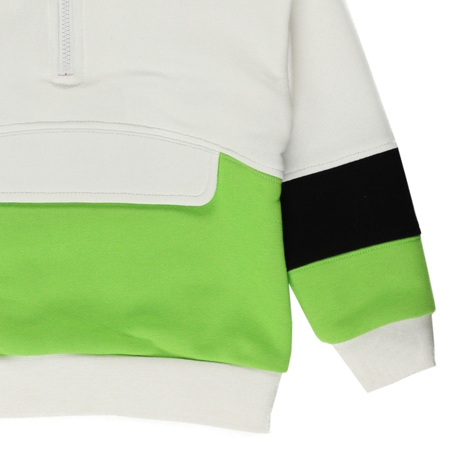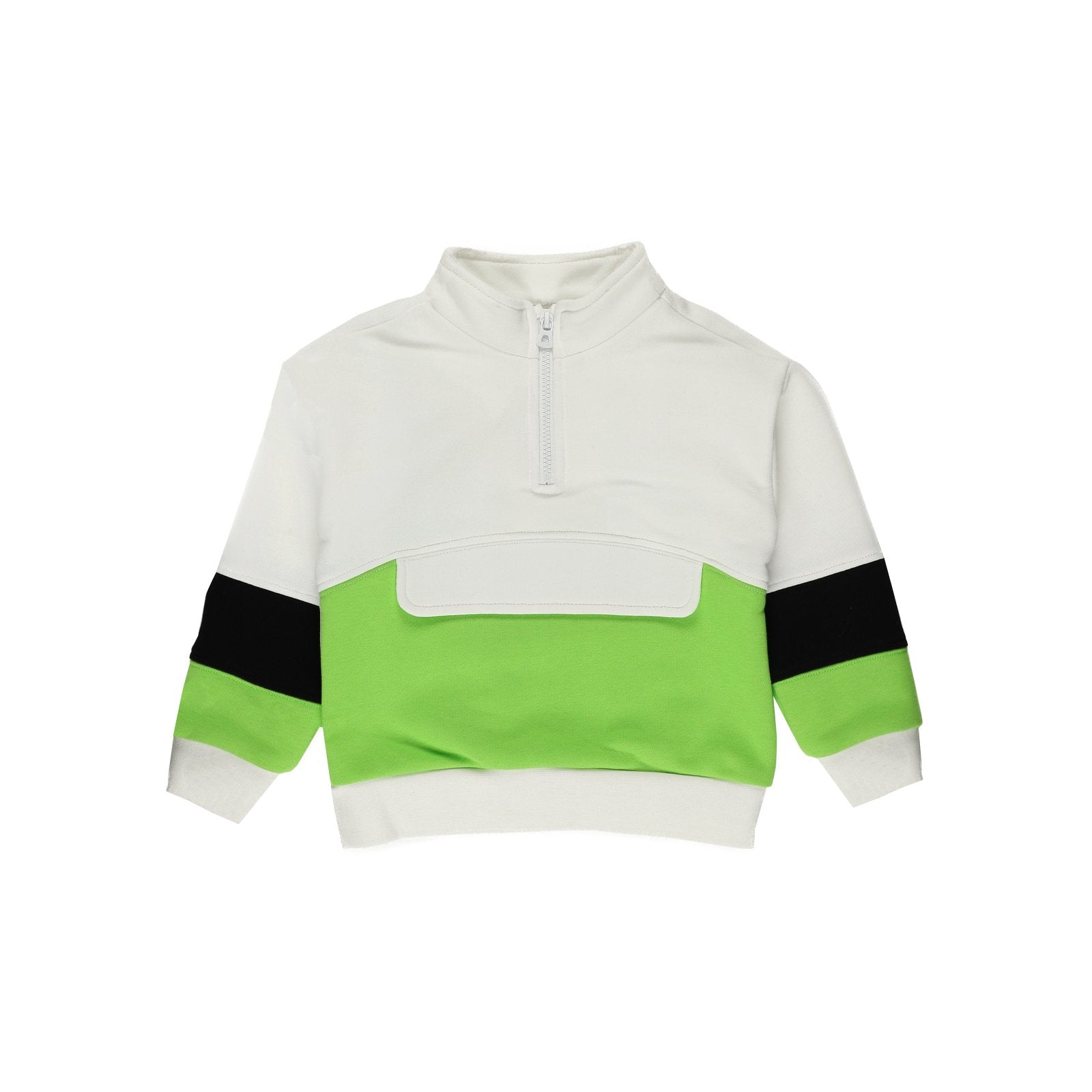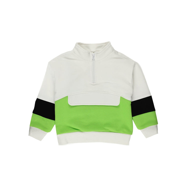 Bluza sport din colecția Natural Power de la Panco este alegerea perfectă pentru băiețelul tău, combinând funcționalitatea cu un design modern și atrăgător. Realizată în culori fresh – alb, verde și negru – și dotată cu un guler înalt, fermoar practic și un buzunar mare în față, această bluză adaugă un plus de stil și utilitate garderobei micuțului tău.
