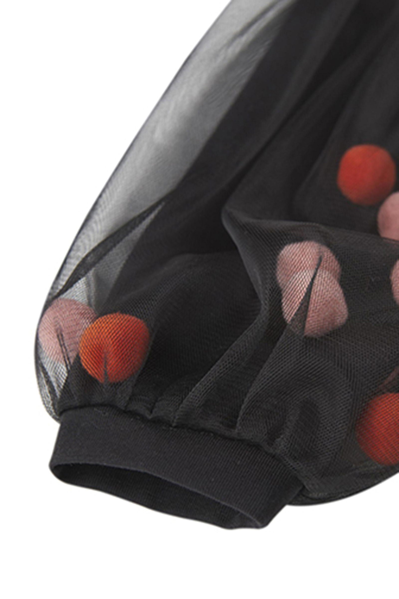 Cu un guler rotund clasic și o croială normală, această bluza are mâneci lungi din tull fin, cu insertii delicate de biluțe de pluș, care adaugă un aer jucăuș și elegant. Detaliile cu biluțe de pluș pe manșete sunt perfecte pentru un plus de rafinament și un contrast de texturi, ideal pentru un look festiv sau de zi cu zi.