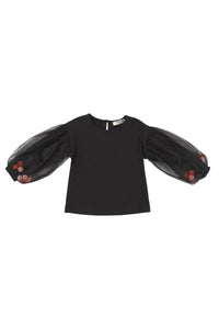 Bluza eleganta cu maneca lunga si Tull, PANCO - Good Day, Negru, pentru fetite