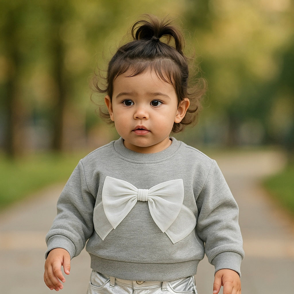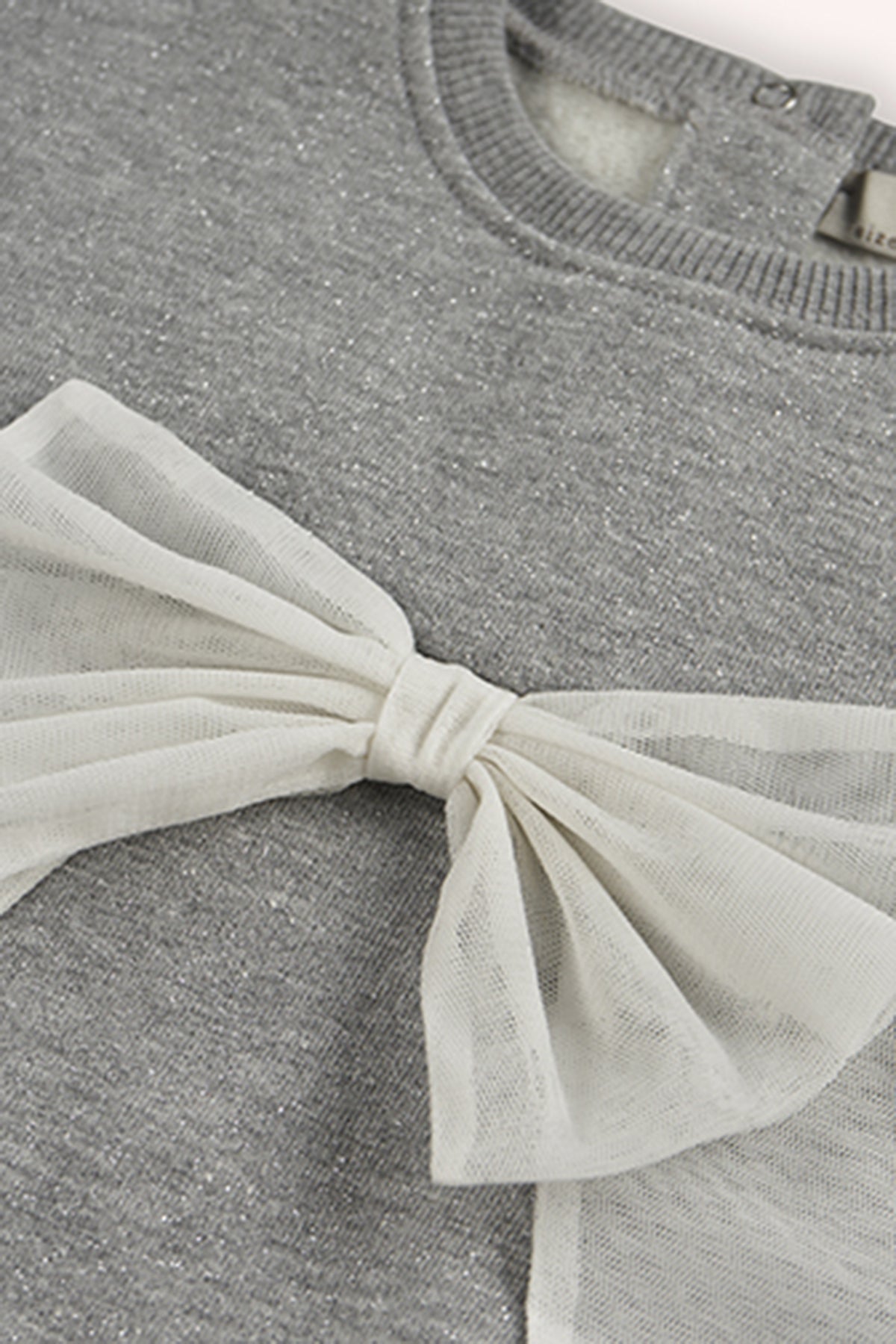 Bluza groasa cu maneca lunga si fundita din tull, PANCO - Little Ballerina, Gri Melanje, pentru fetite