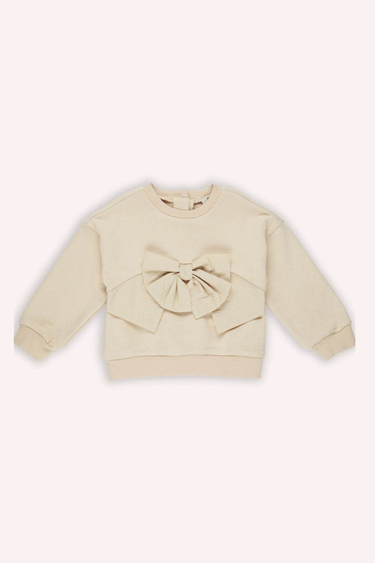 Bluza groasa cu maneca lunga si fundita, PANCO - Minimal Optimist, Bej, pentru fetite