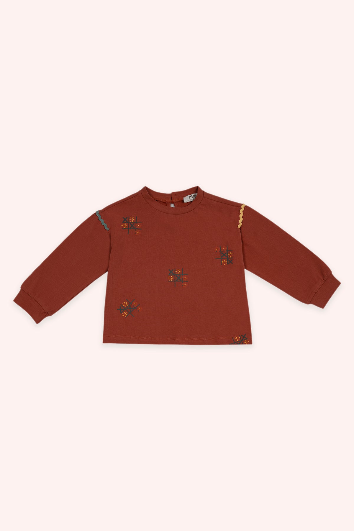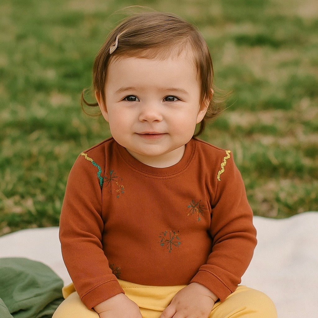 Bluza cu mânecă lungă Retro Journey de la Panco, într-o nuanță caldă de cărămiziu, este o alegere minunată pentru fetițele cu vârste între 6 luni și 3 ani. Confecționată dintr-un material moale și ușor elastic, cu 92% bumbac și 8% elastan, această bluză oferă confort și libertate de mișcare, fiind ideală pentru zilele reci de iarnă.