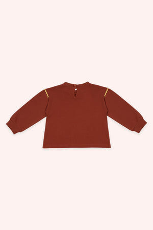 Bluza subtire cu maneca lunga, PANCO - Retro Journey, Caramiziu, pentru fetite