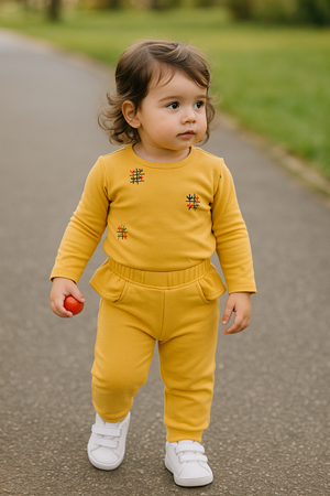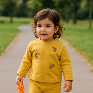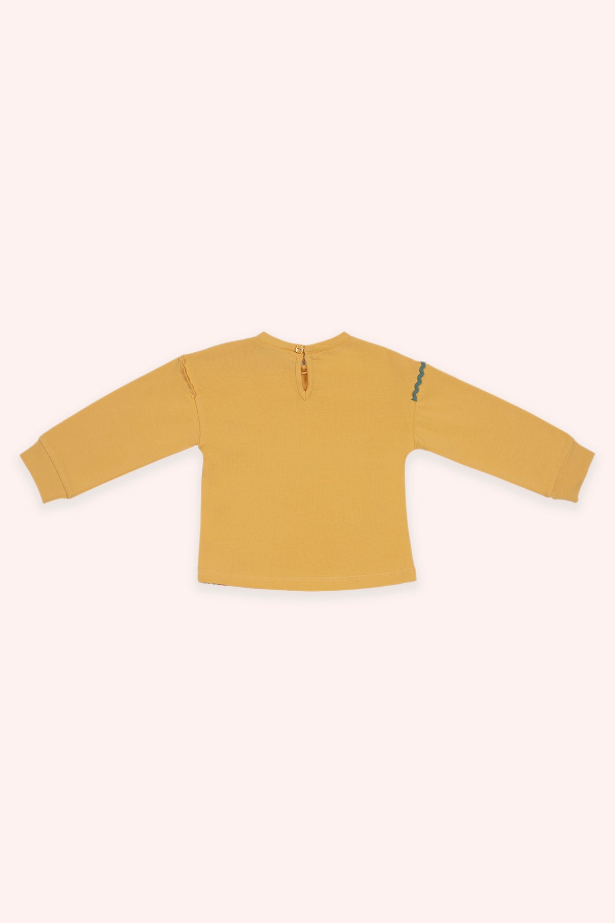 Bluza cu mânecă lungă Retro Journey de la Panco, într-o nuanță caldă de galben, este o alegere minunată pentru fetițele cu vârste între 6 luni și 3 ani. Confecționată dintr-un material moale și ușor elastic, cu 92% bumbac și 8% elastan, această bluză oferă confort și libertate de mișcare, fiind ideală pentru zilele reci de iarnă.