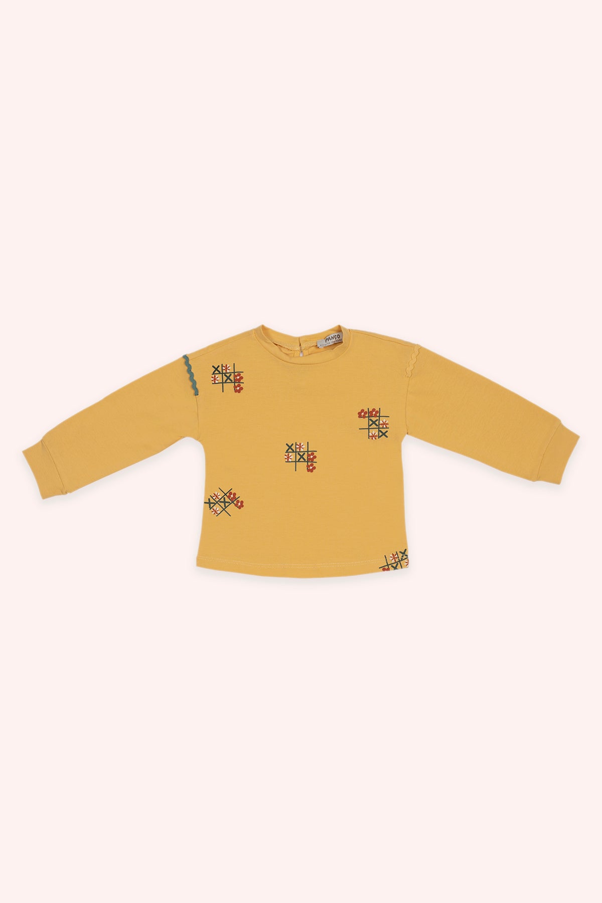 Designul său vesel este completat de un imprimeu jucăuș „X” și „O” aplicat prin serigrafie, care adaugă o notă de originalitate și stil retro garderobei celor mici.