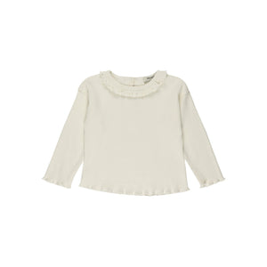 Bluza subtire cu maneca lunga si guler volan PANCO - Little Heart, Ecru, pentru fetite