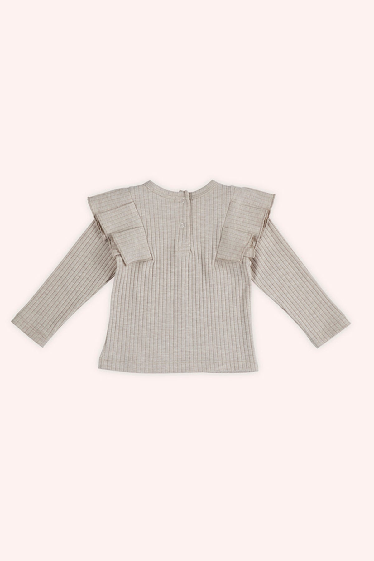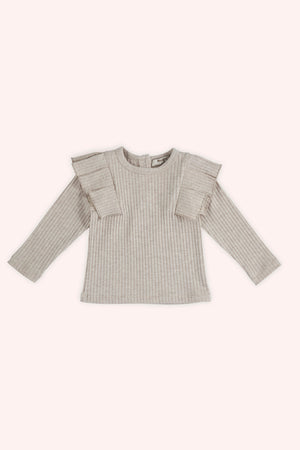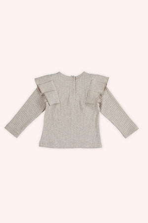 Bluza tricotata cu volanase la umeri, Gri Melange, pentru bebe fetite