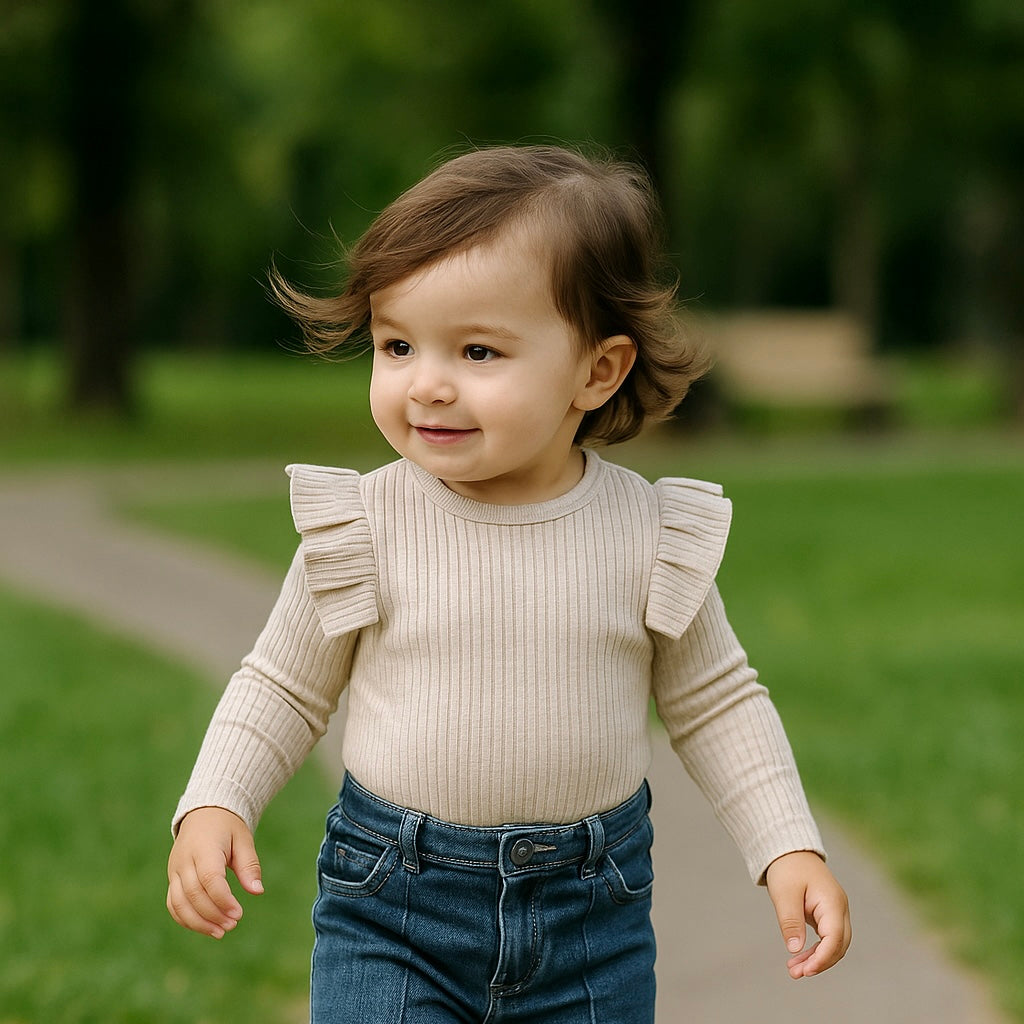 Această bluză tricotată cu mânecă lungă și volănașe la umeri reprezintă alegerea perfectă pentru micuțele cu vârste între 6 luni și 3 ani, aducând un plus de confort și stil în garderoba lor de iarnă. Confecționată dintr-un material subțire, moale, fin și calduros, bluză este ideală pentru zilele răcoroase, oferind un echilibru perfect între căldură și respirabilitate.