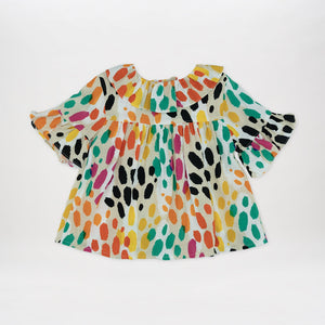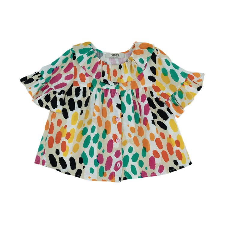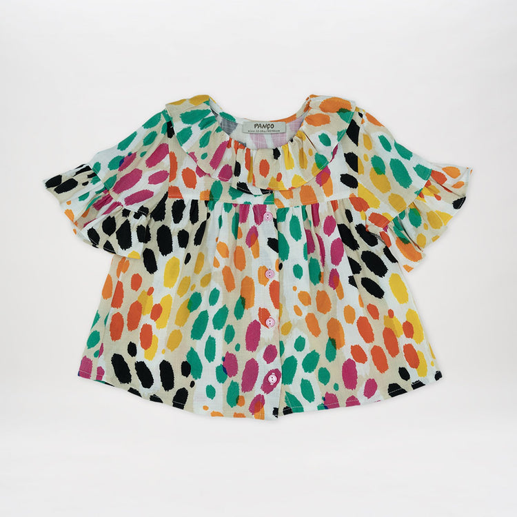 Bluza vaporoasa cu maneca scurta si volane PANCO - Hope, cu buline colorate, pentru fetite
