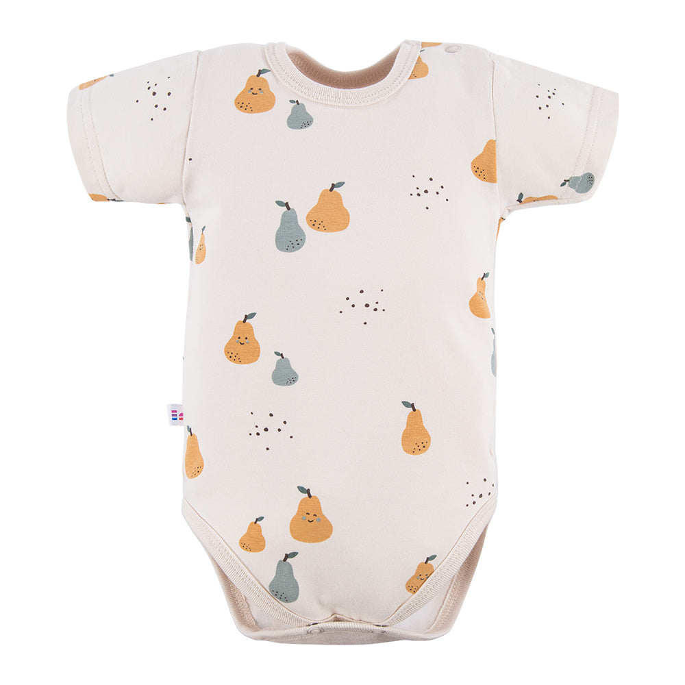 Body cu maneca scurta si model pere, EEVI - Pearlect, Alb, pentru baietei este disponibil cu materialul din 95% bumbac si 5% elastan asigura confortul necesar, iar designul cu pere face din acest body o alegere grozava pentru orice ocazie.