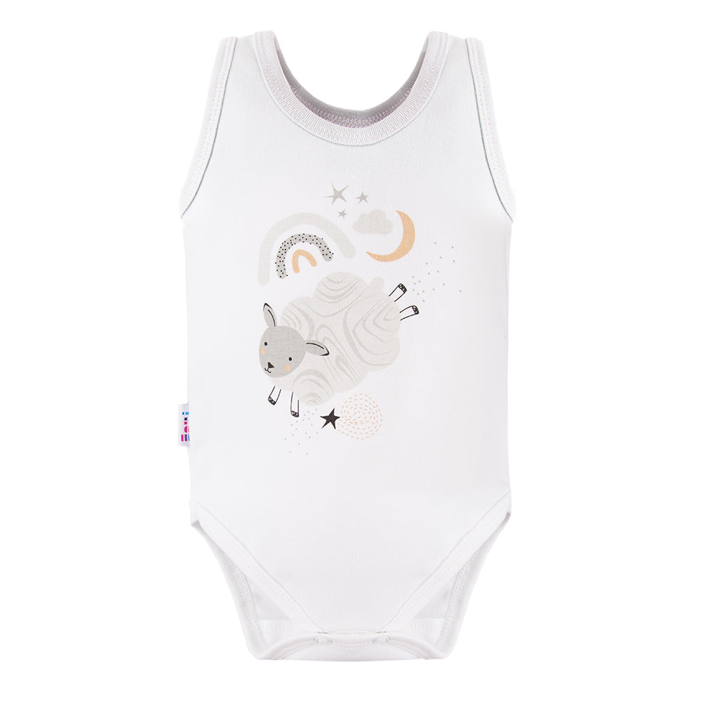 Body fara maneci cu model oita, EEVI - Mellow, Alb, pentru baietei