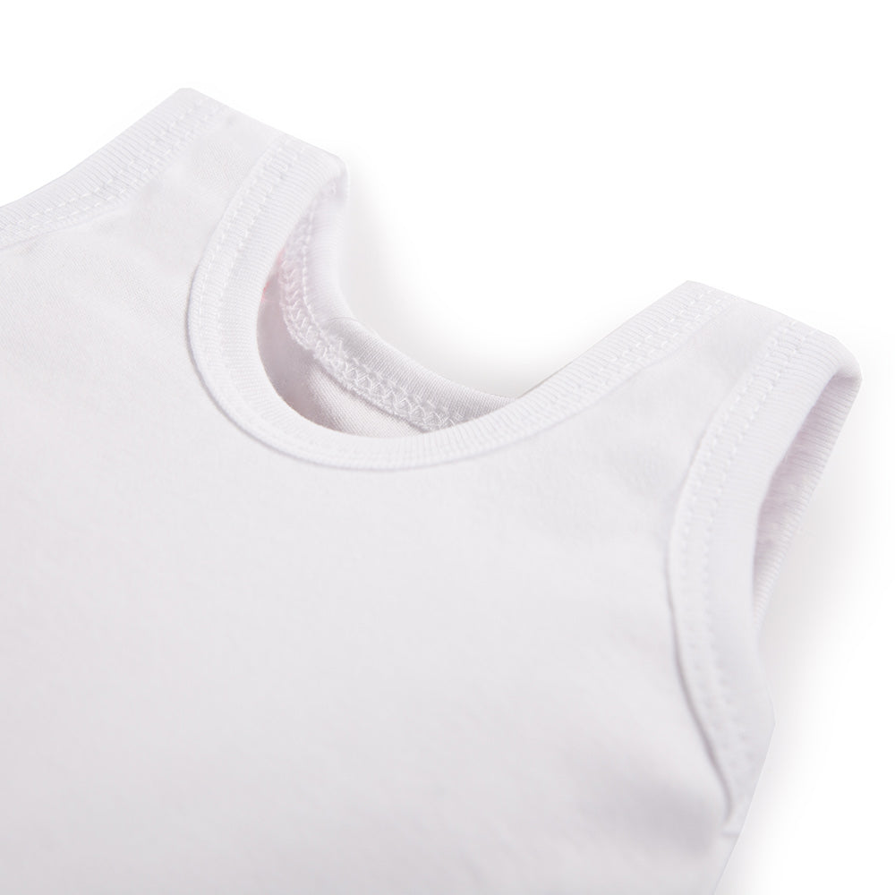 Descopera confortul si calitatea premium cu acest Body fara maneci EEVI de culoare alba, pentru baietei. Aceasta piesa esentiala de imbracaminte este ideala pentru bebelusi, garantand confort si libertate de miscare. Realizat din materiale de inalta calitate, acest body este perfect pentru intreaga zi. Poate fi purtat atat simplu, cu pampers sau pantalonas scurt, cat si pe dedesubt, tinand loc de maieu.