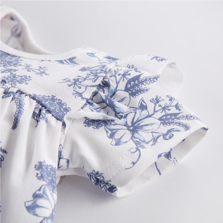 Body tip rochita cu maneca scurta si model floral, EEVI - Botanic, Alb, pentru fetite