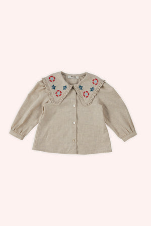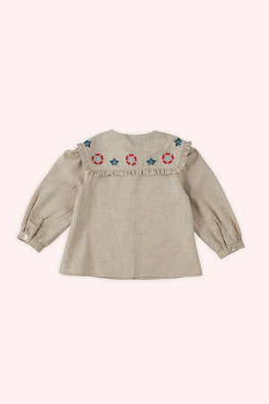Camasa eleganta, delicata cu maneca lunga cu broderie, Bej, pentru bebe fetite
