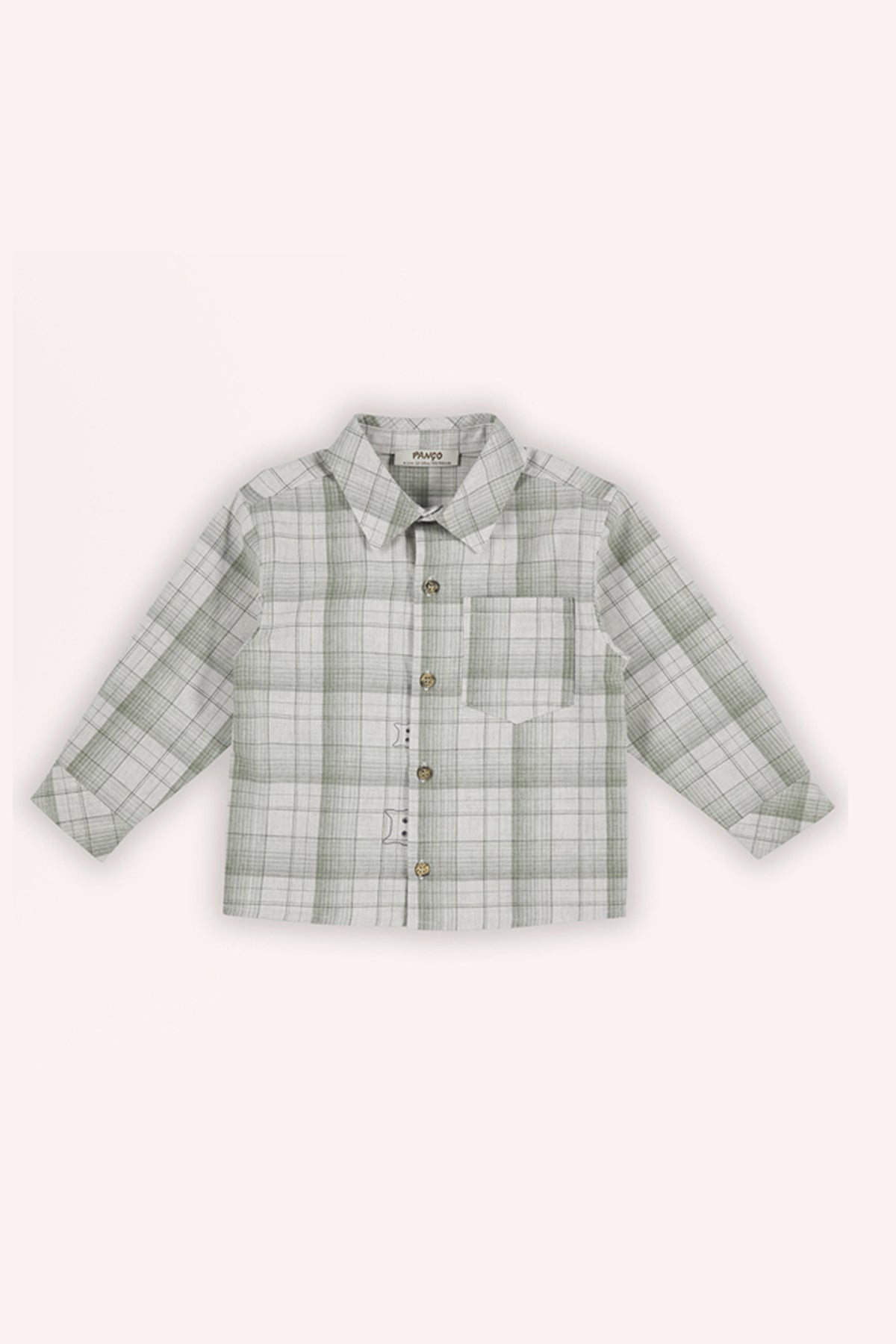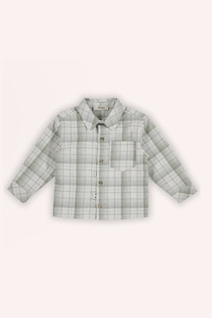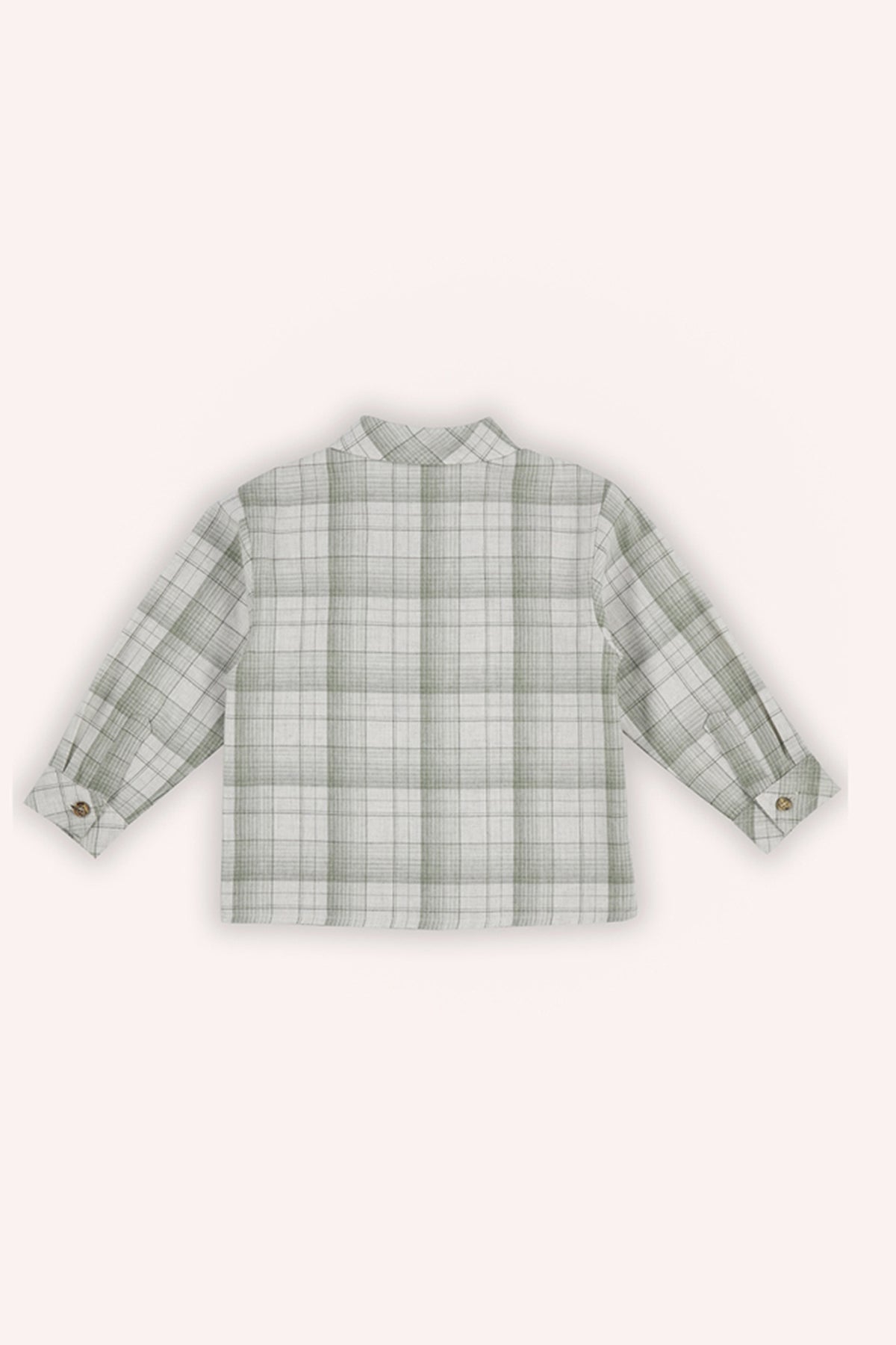 Produsul este decorat discret prin serigrafie, accentuând carourile kaki și oferind o notă subtilă de personalitate care se potrivește perfect cu colectia Minimal Optimist. Fabricată cu grijă în Turcia, această cămașă este adaptată pentru cei mici și asigură o purtare confortabilă pe parcursul zilelor friguroase.