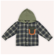 Camasa sport cu gluga, model in carouri, PANCO, Kaki, pentru bebe baieti