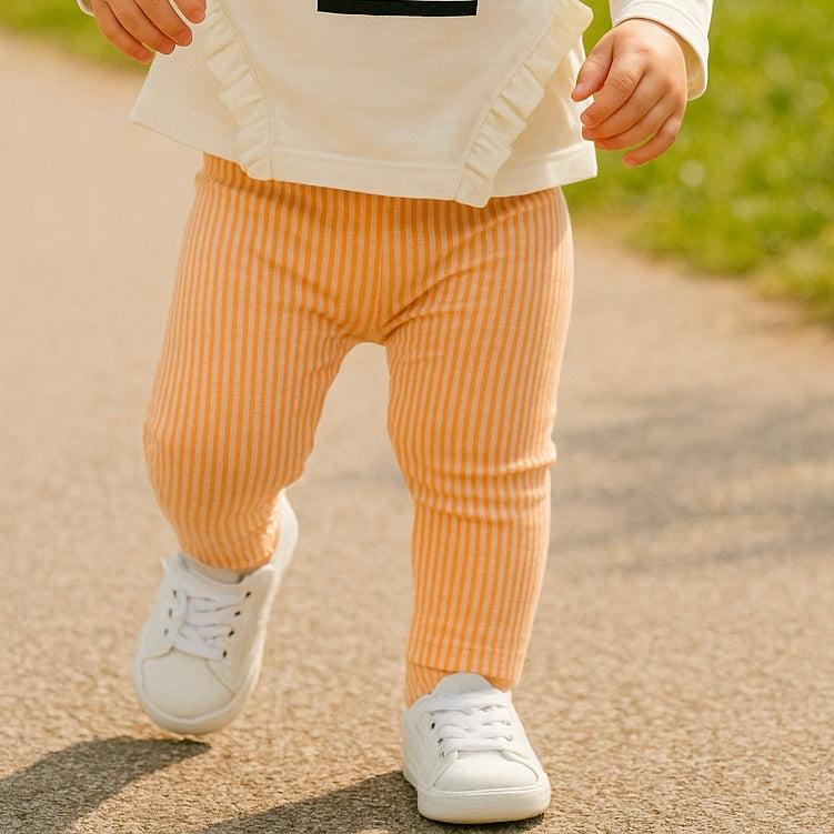 Colantii PANCO cu dungi in nuanta somonului sunt mai mult decat o simpla piesa vestimentara. Ei sunt frumosi, confortabili si functionali, transformand fiecare zi intr-o poveste de stil. Cu o croiala atent gandita, acesti colanti se potrivesc perfect atat la joaca, cat si la evenimente speciale, oferind fetitelor libertatea de a explora lumea cu incredere si stil.