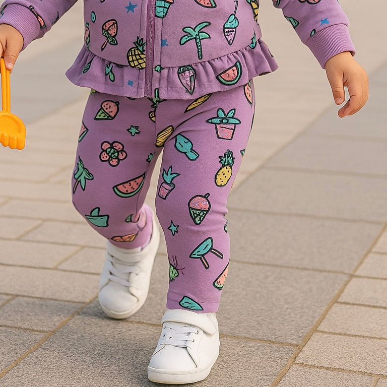 Colanti cu modele multicolore de fructe PANCO din colectia Surf Up sunt ideali pentru fetitele cu varsta cuprinsa intre 0 si 3 ani, oferind confort cat si un design atragator. Culoarea mov aprins cat si imprimeul viu colorat o vor scoate in evidenta pe micuta ta, oriunde s-ar afla.