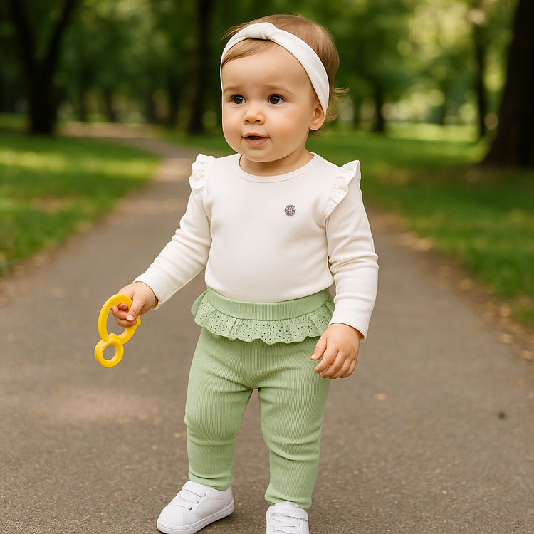 Pentru micuțele fashioniste, colanții cu volan din dantelă PANCO sunt alegerea perfectă. Acești colanți de culoarea Mint sunt concepuți pentru a oferi nu doar un aspect adorabil, ci și confort sporit. Realizați dintr-o țesătură moale, cu 95% bumbac și 5% elastan, asigură libertate de mișcare și un stil aparte pentru fiecare zi de joaca.
