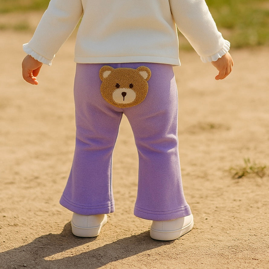 Acest model de colanti imbina designul atragator cu functionalitatea. Ursuletul brodat adauga un element de veselie, facand ca fiecare aparitie sa fie speciala. Croiala evazata si talia normala asigura un fit perfect, oferind libertate de miscare pentru toate aventurile micutilor.