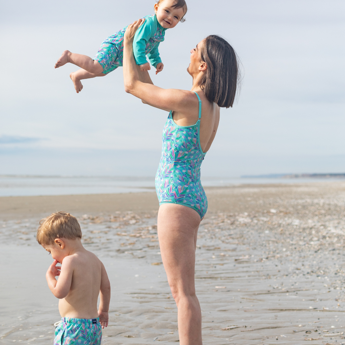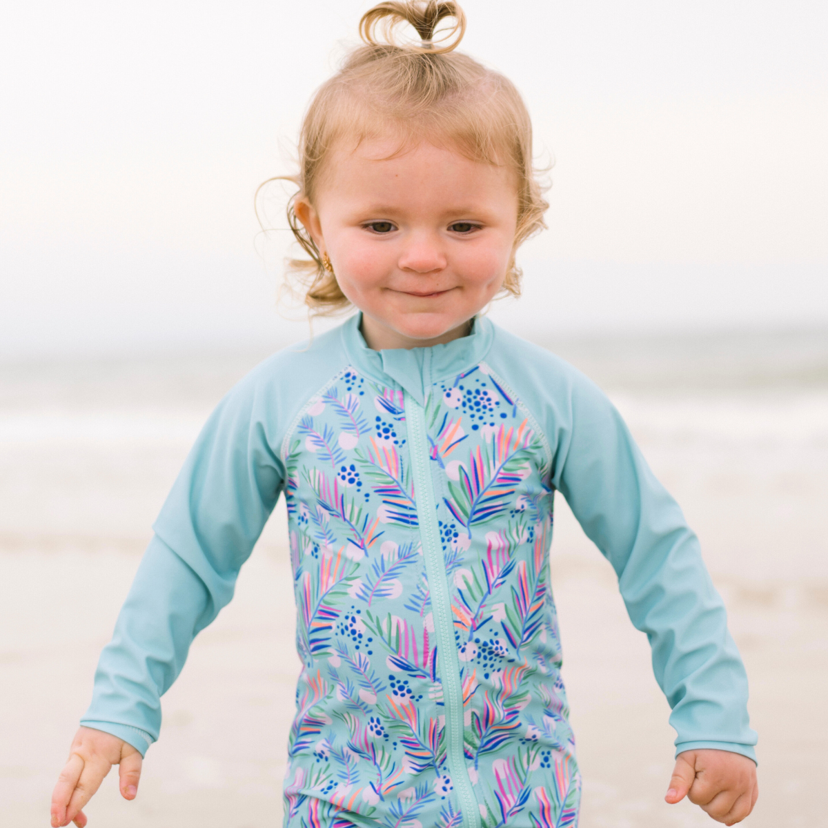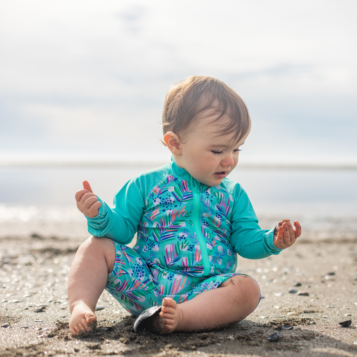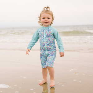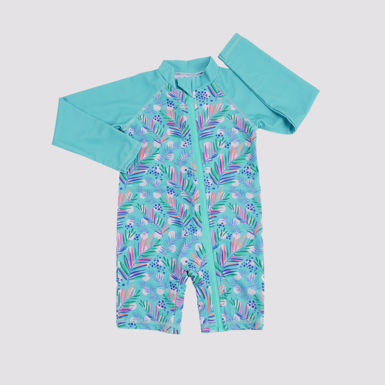 Costum de baie cu protectie solara UPF 50+, ZIPSTER - Swimster Paradise, Turcoaz, pentru fetite sau baietei