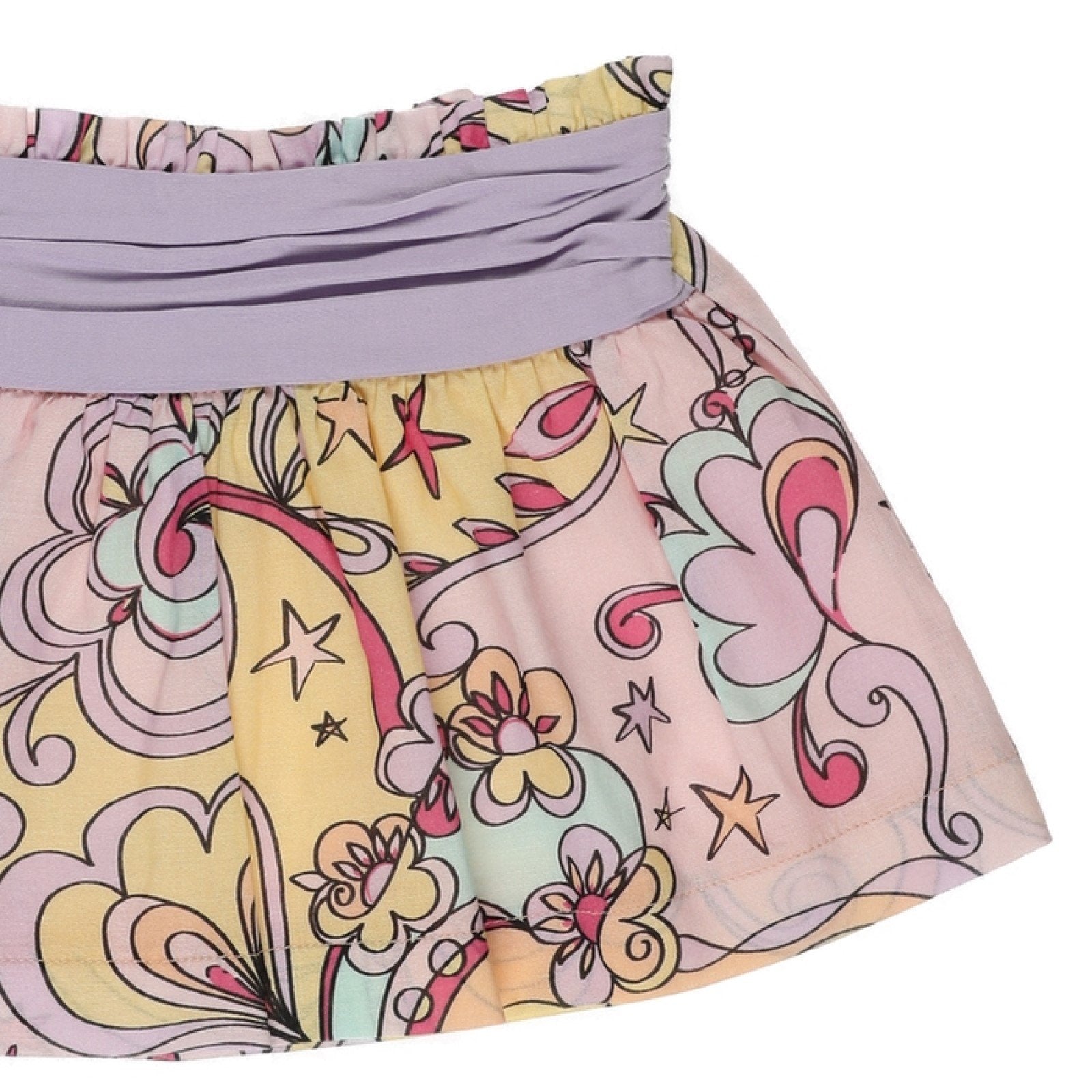 Fusta cu banda mov in talie si imprimeu colorat PANCO - Star Light, Roz, pentru fetite
