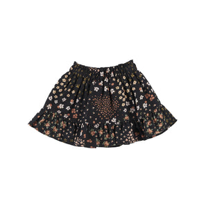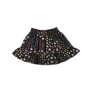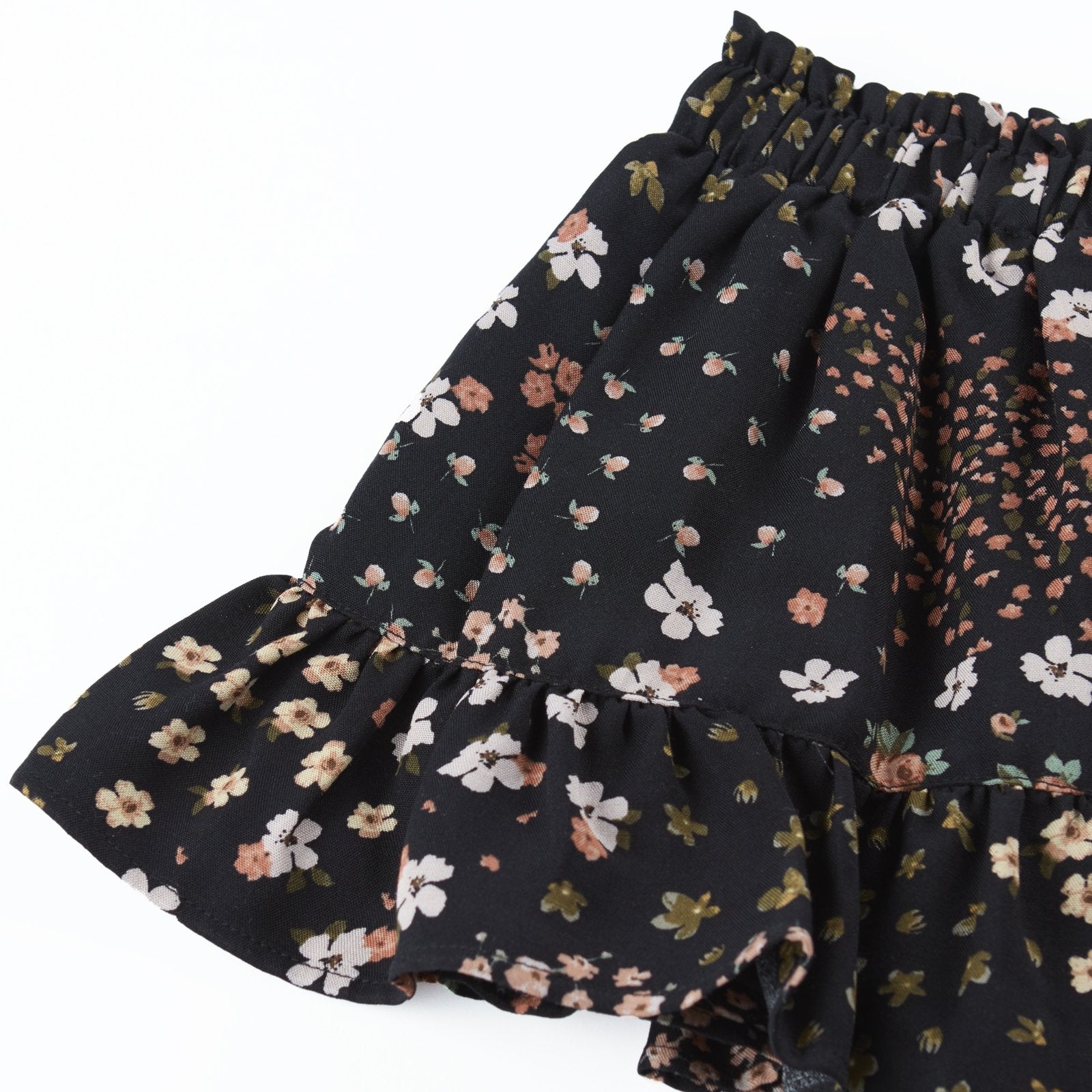 Fusta cu volan si imprimeu floral PANCO - Blossoms, Negru cu floricele, pentru fetite