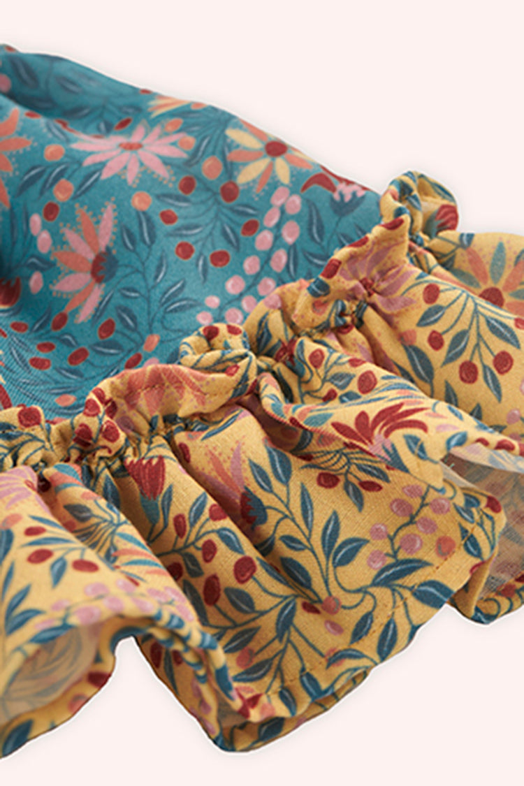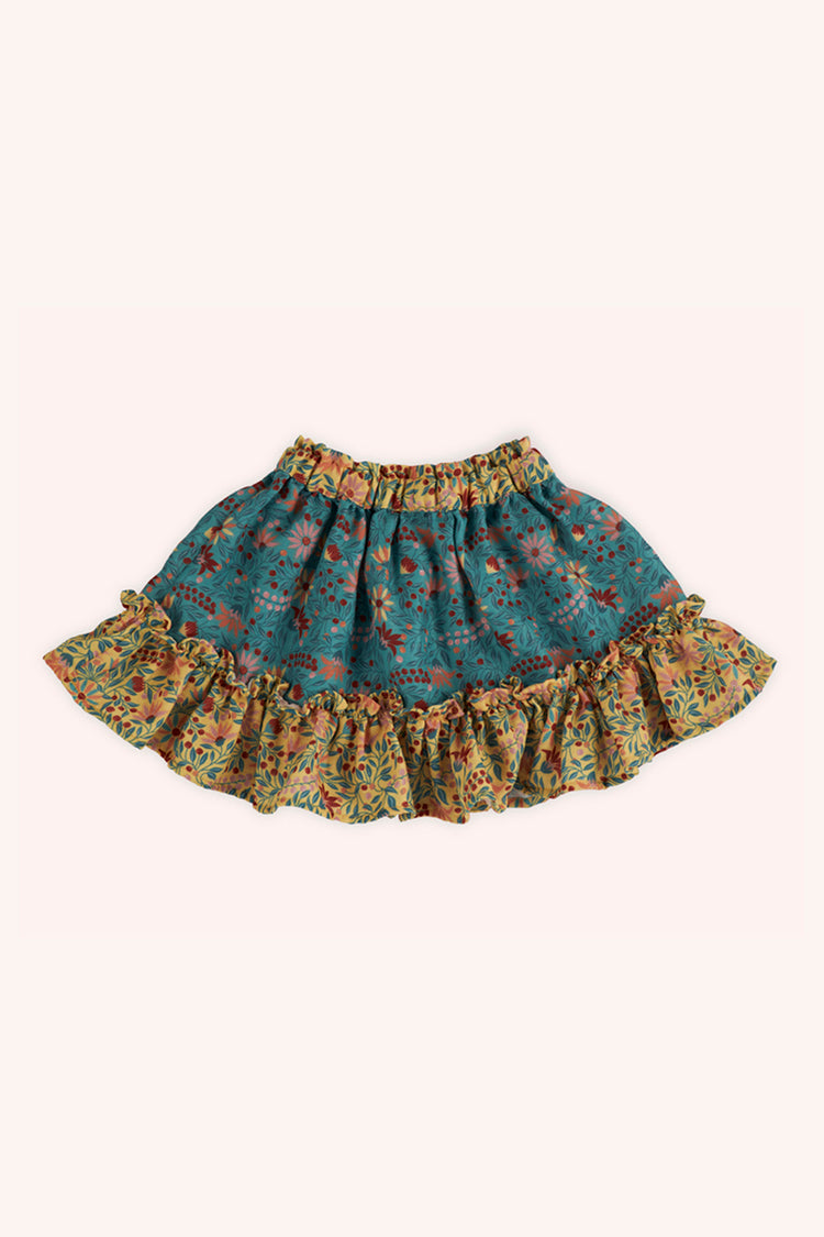 Fusta cu volanas, PANCO - Retro Journey, Verde si Galben, pentru fetite