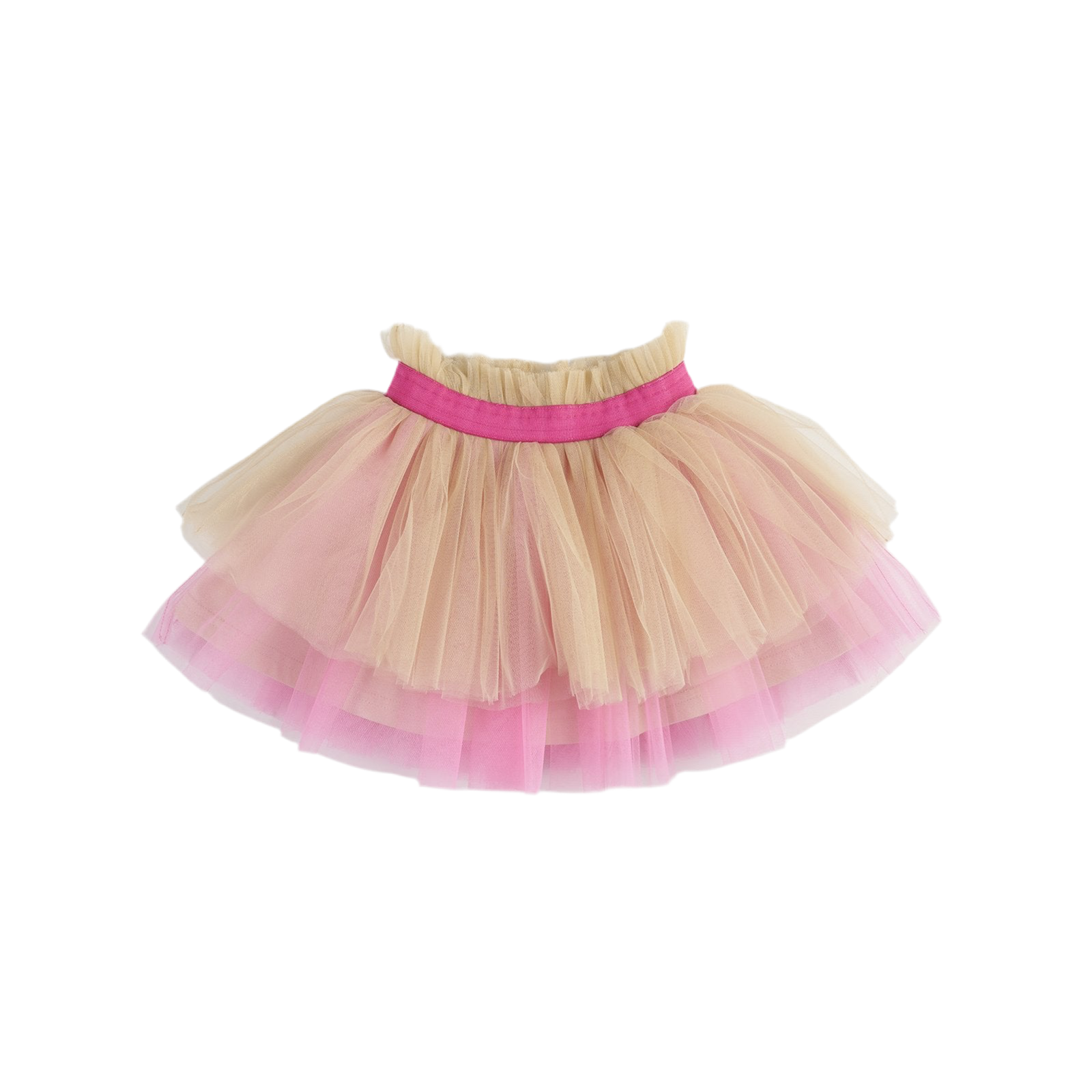 Fusta tutu din tull cu banda roz in talie si volane PANCO - Hope, Roz Fucsia si Bej, pentru fetite