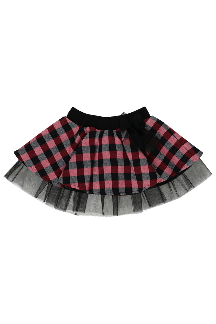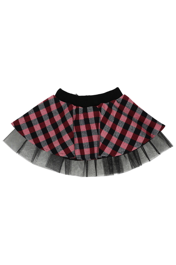 Fusta tutu cu tull si model in carouri, PANCO - Pretty, Rosu si Negru, pentru fetite