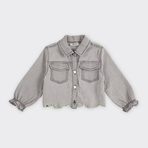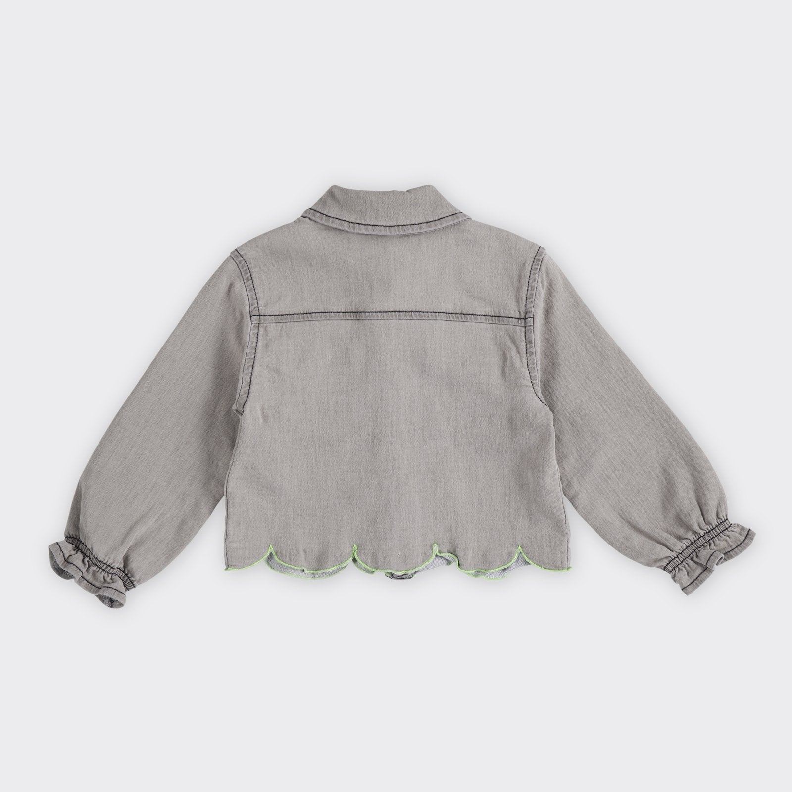 Geaca de blugi tip cămașă, cu broderie PANCO - Elena, Gri, Denim, pentru fetite #primavara/vara