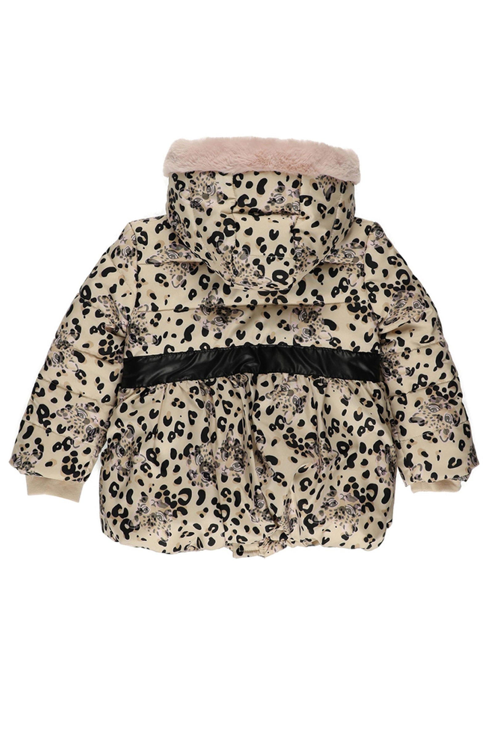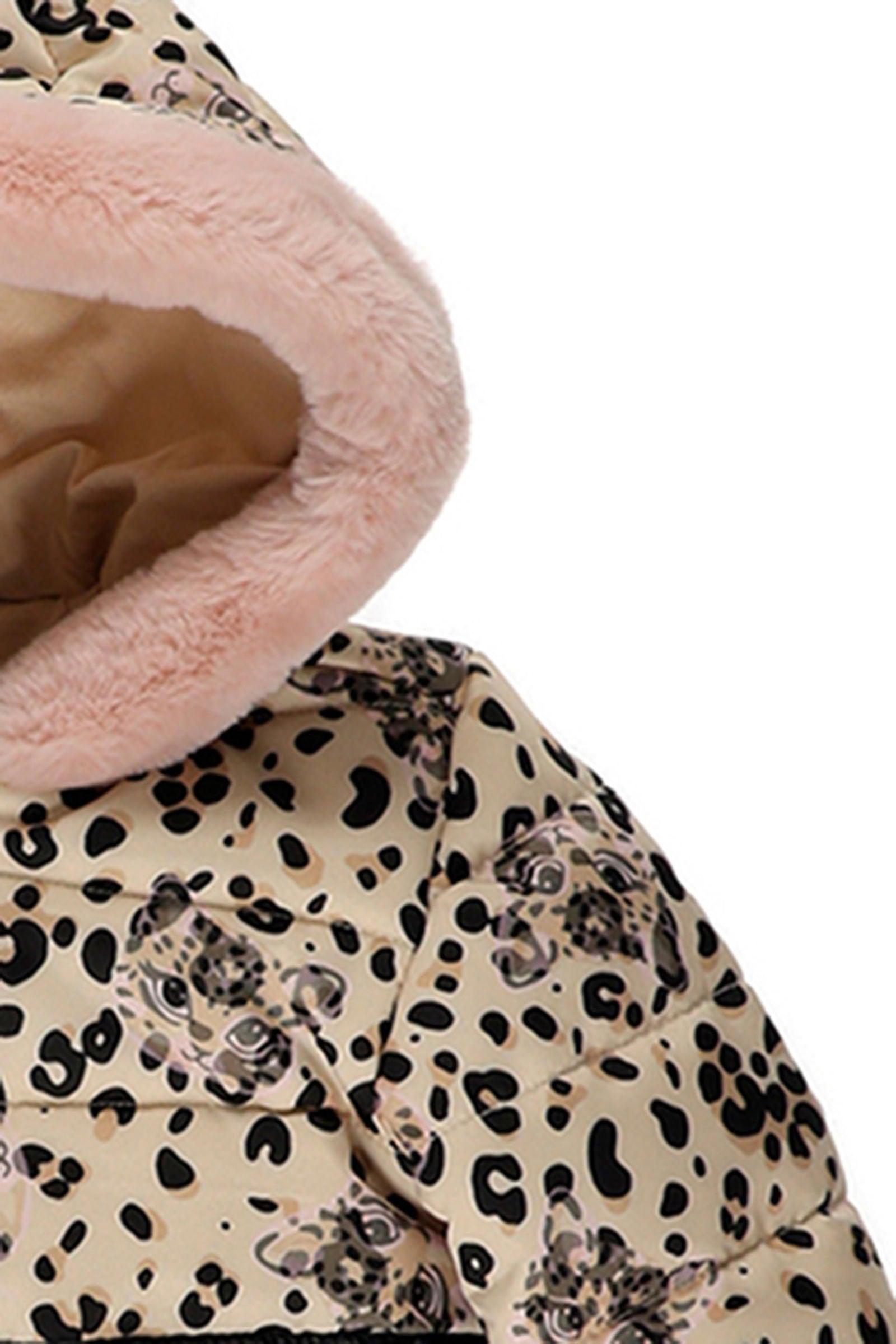 Geaca groasa cu blanita, cu gluga si curea in talie, PANCO - Baby, Bej - Animal Print, pentru fetite