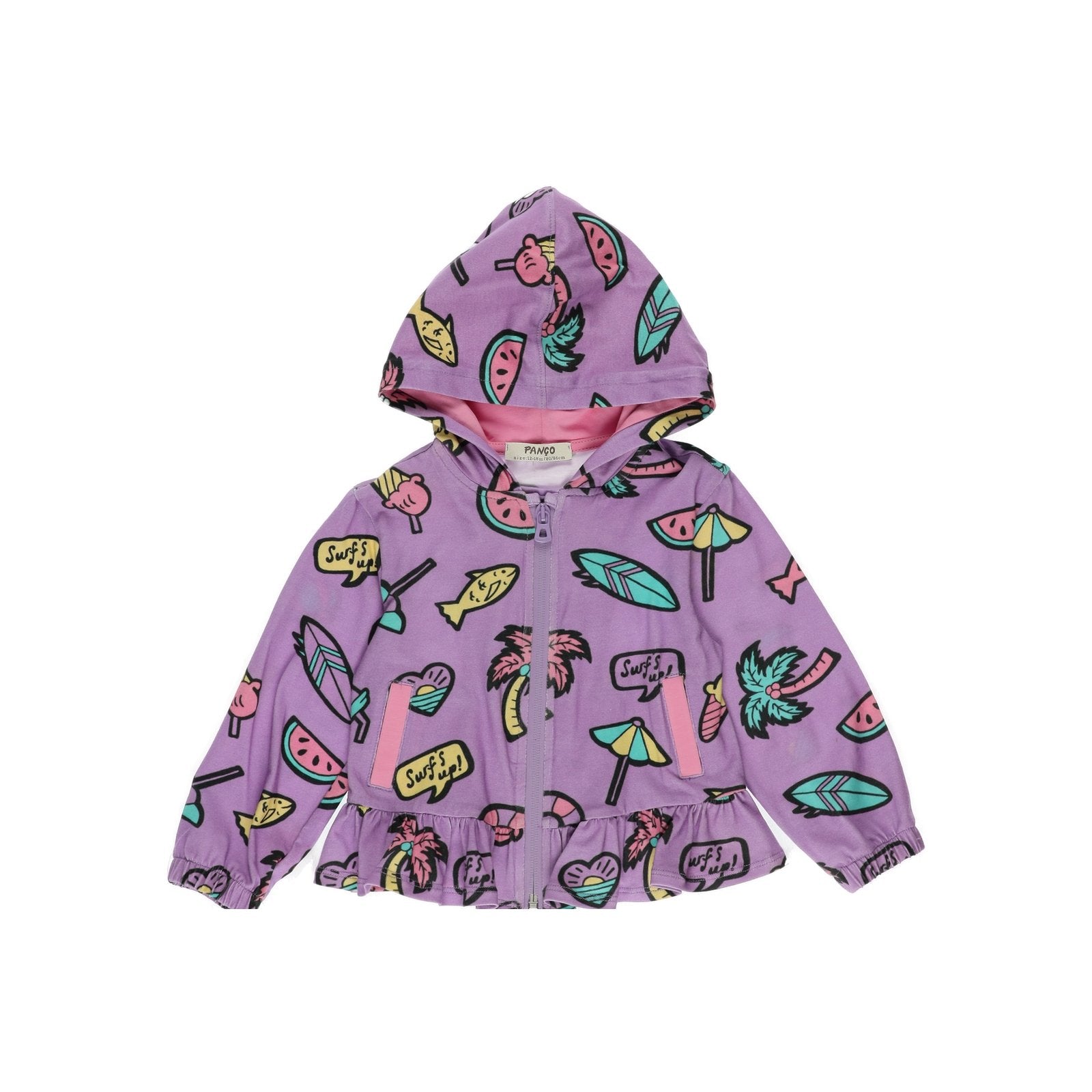 Hanorac cu gluga, fermoar si imprimeu PANCO - Surf Up, Mov, pentru fetite 0-3 ani