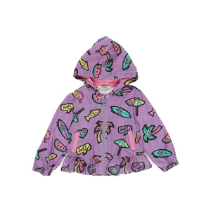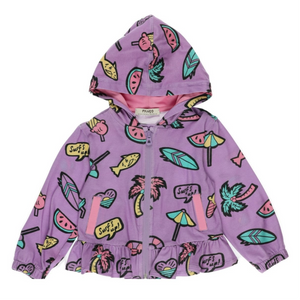 Hanoracul "Surf Up" vine si in marimi potrivite pentru fetitele cu varste de la 0 la 3 ani. Perfect pentru sezonul primavara-vara, chiar si inceputul toamnei, acest hanorac combina materialele de inalta calitate cu un design practic, garantand confort si libertate de miscare. Imprimeul vesel si gluga practica completeaza acest design modern.