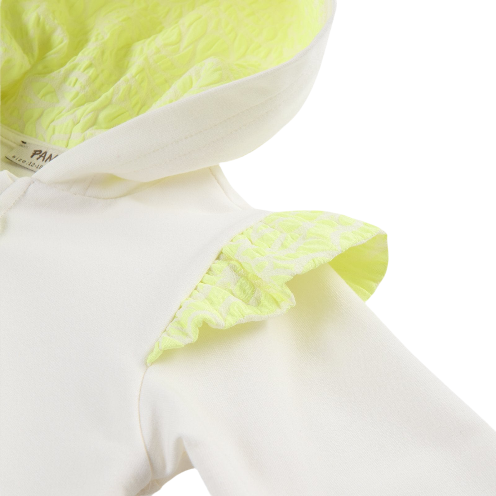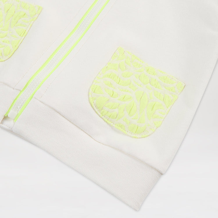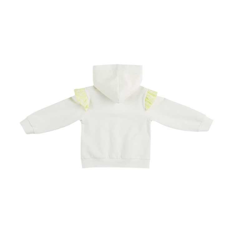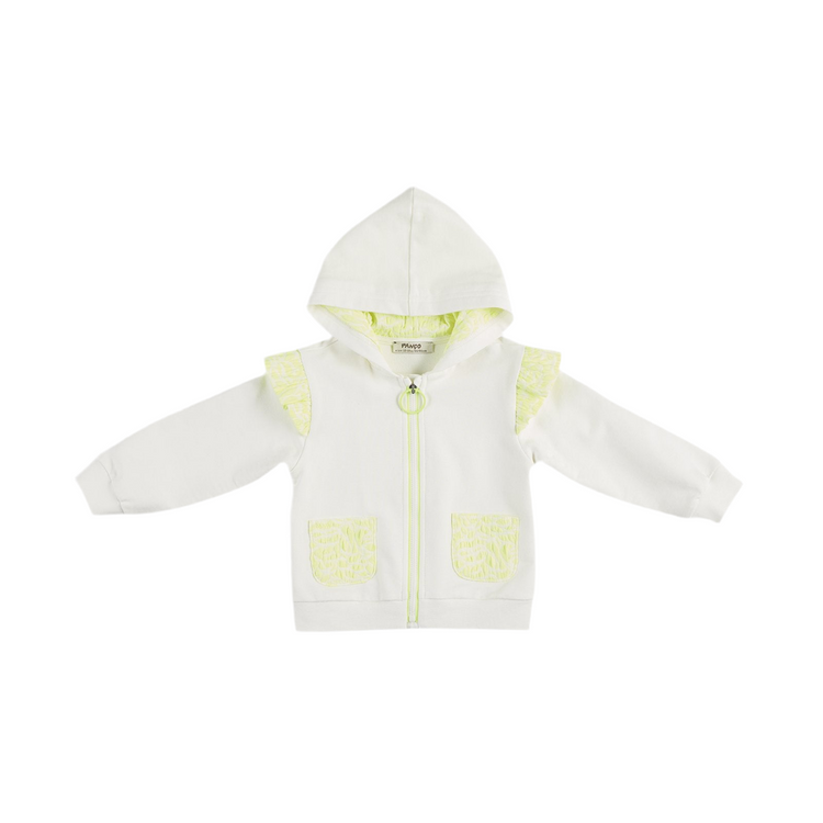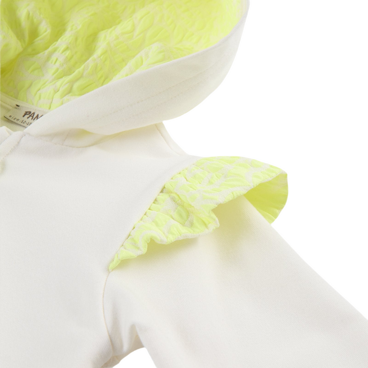 Hanorac cu gluga fermoar si volane PANCO - Elena2, Ecru si Galben fosforescent, pentru fetite