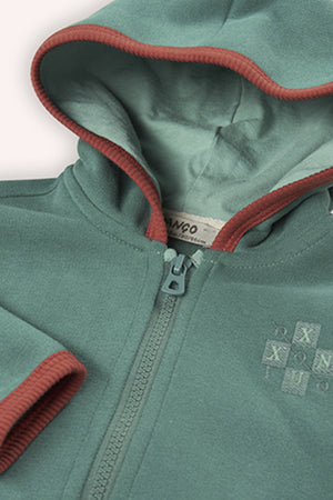 Hanorac gros din fleece, cu gluga si fermoar, PANCO - Retro Journey, Verde, pentru baieti