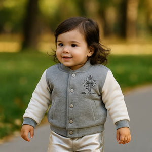 Jacheta groasă Little Ballerina de la Panco este o alegere perfectă pentru fetițele cu vârste între 6 luni și 3 ani, combinând eleganța cu un stil sportiv și confortabil. Cu un design tip bomber, această jachetă tricotată este realizată din 100% bumbac, având interiorul vătuit pentru un plus de căldură în zilele reci de iarnă.