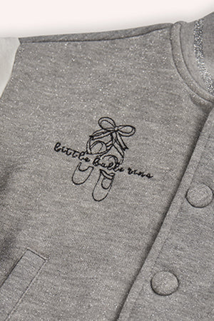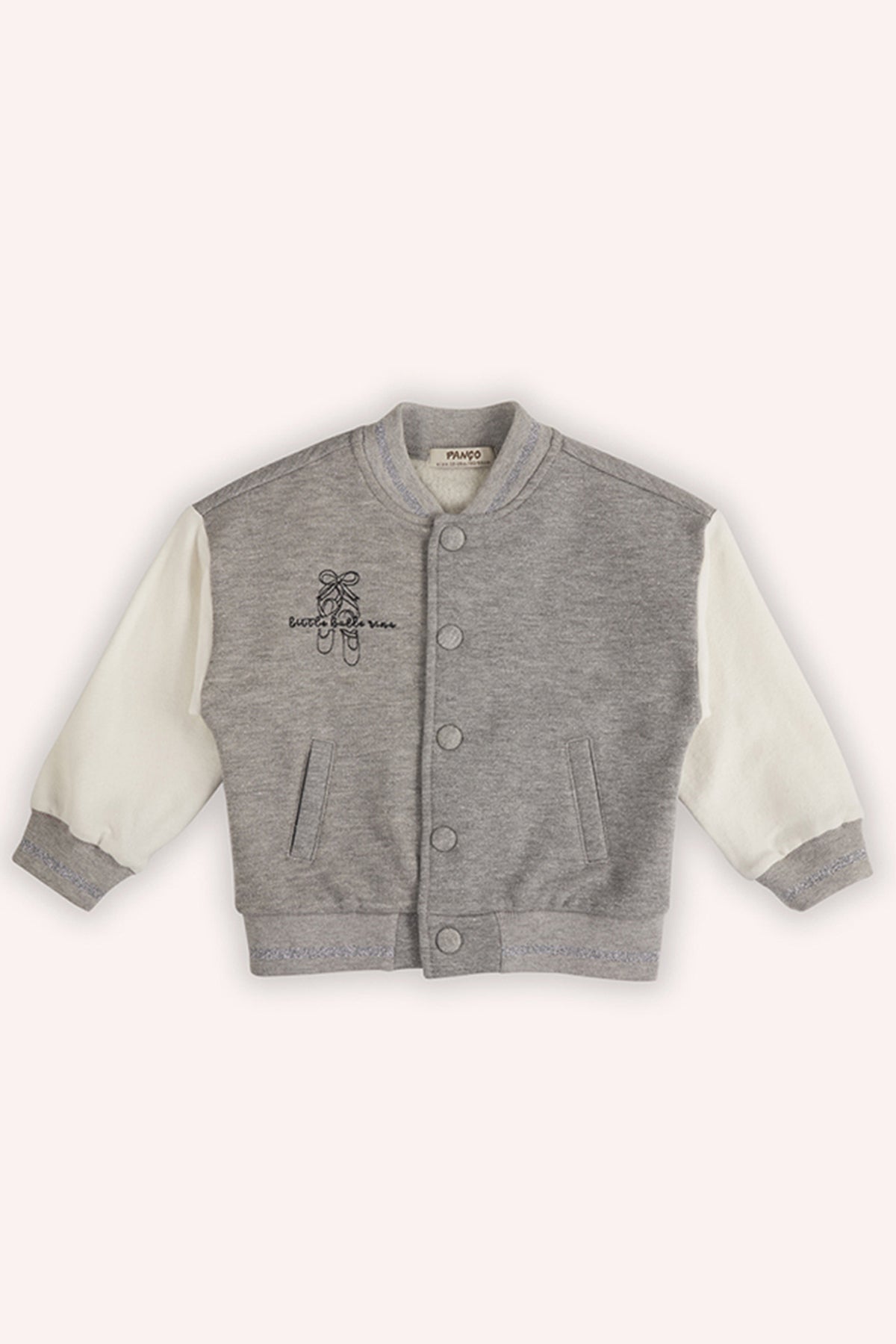 Jacheta groasa sport cu capse, Panco - Little Ballerina, Gri Melange, pentru fetite