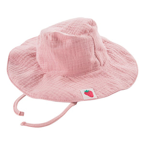 Cu Palaria din muselina EEVI, Strawberry and Love, Roz disponibila si in dimensiunea de 43 cm, micutul tau va beneficia de o acoperire suplimentara. Ideala atat pentru fete cat si pentru baieti, aceasta palarie poate fi inclusa in orice garderoba de vara sau primavara.