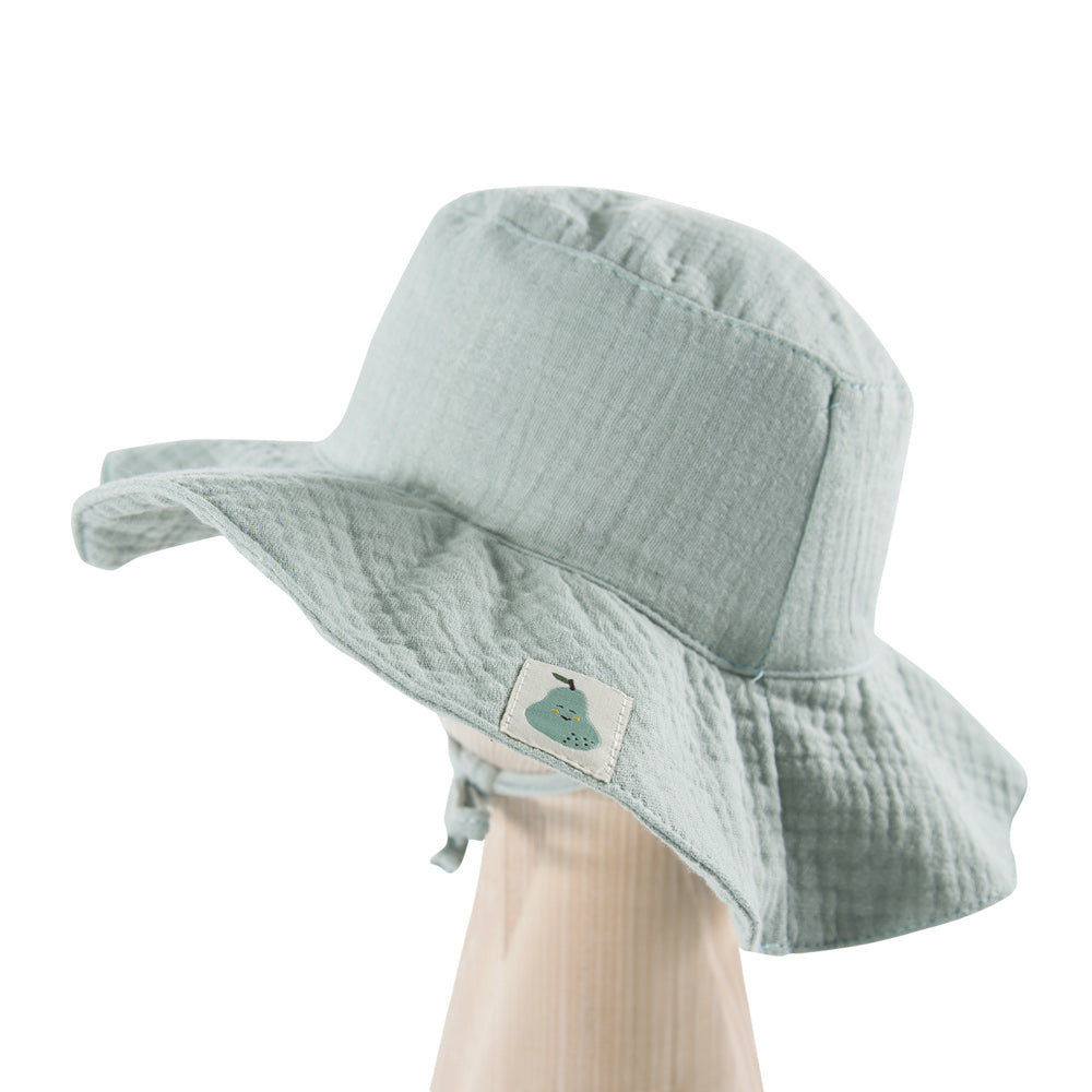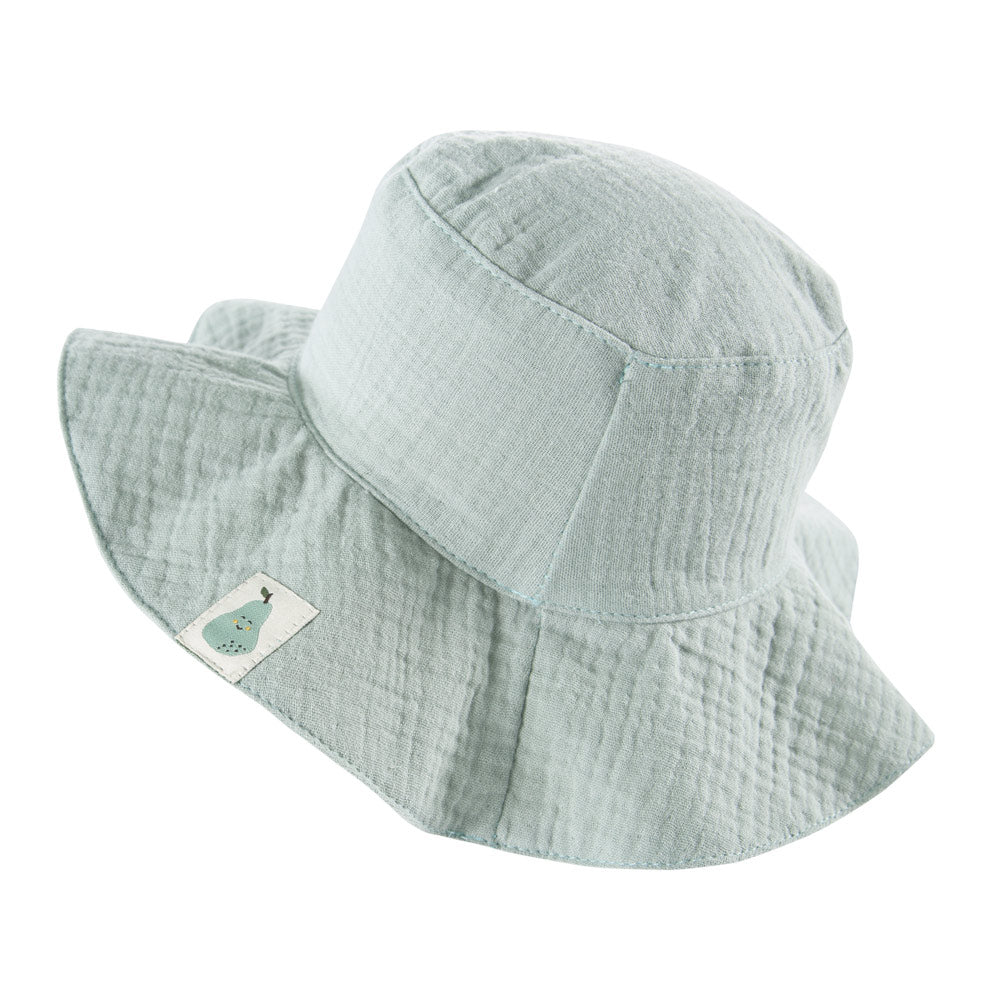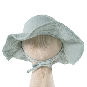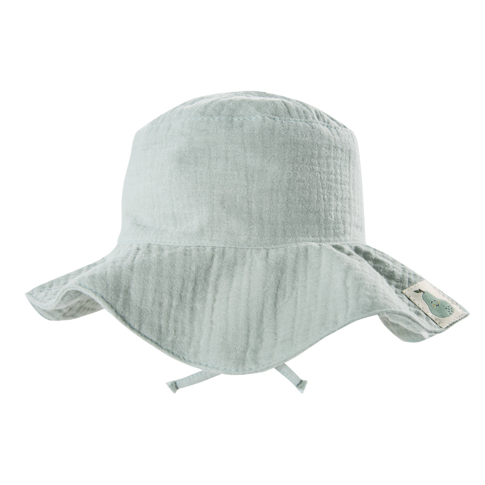Protejeaza-ti micutii de razele soarelui cu aceasta adorabila Palarie din muselina EEVI, Verde Pal. Confectionata din 100% muselina, aceasta palarie este ideala pentru zilele calduroase de vara, oferind un confort deosebit si o protectie eficienta.
